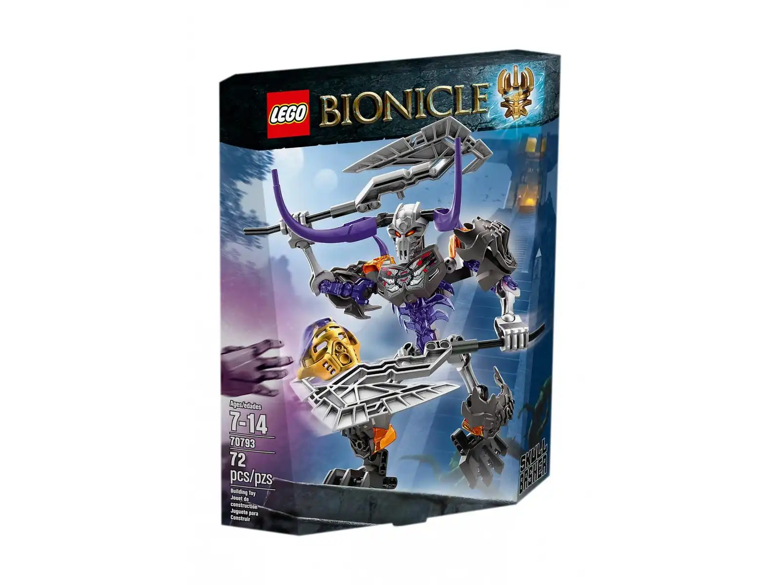 Strażnik Czaszka pilnuje bramy do Świątyni Stworzenia! Ten przerażający wojownik, stworzony przez Władcę Czaszek, jest uzbrojony w 2 potężne, haczykowate topory, których użyje wobec każdego, kto spróbuje przejść przez bramę. Przycisk na jego plecach pozwala włączyć funkcję ciosu bojowego i zrywać przeciwnikom maski. Bohaterowie LEGO® BIONICLE® muszą liczyć się z niesamowitą siłą tej bestii!