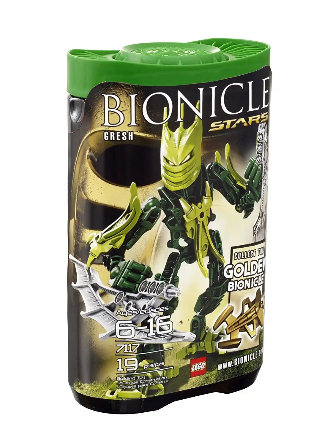 LEGO Bionicle 7117 Gresh to zestaw klocków dla dzieci w wieku 6 lat i starszych, wyprodukowany przez markę LEGO. Zestaw składa się z 19 elementów i umożliwia stworzenie postaci z serii Bionicle. Produkt jest przeznaczony zarówno dla chłopców, jak i dziewcząt.
