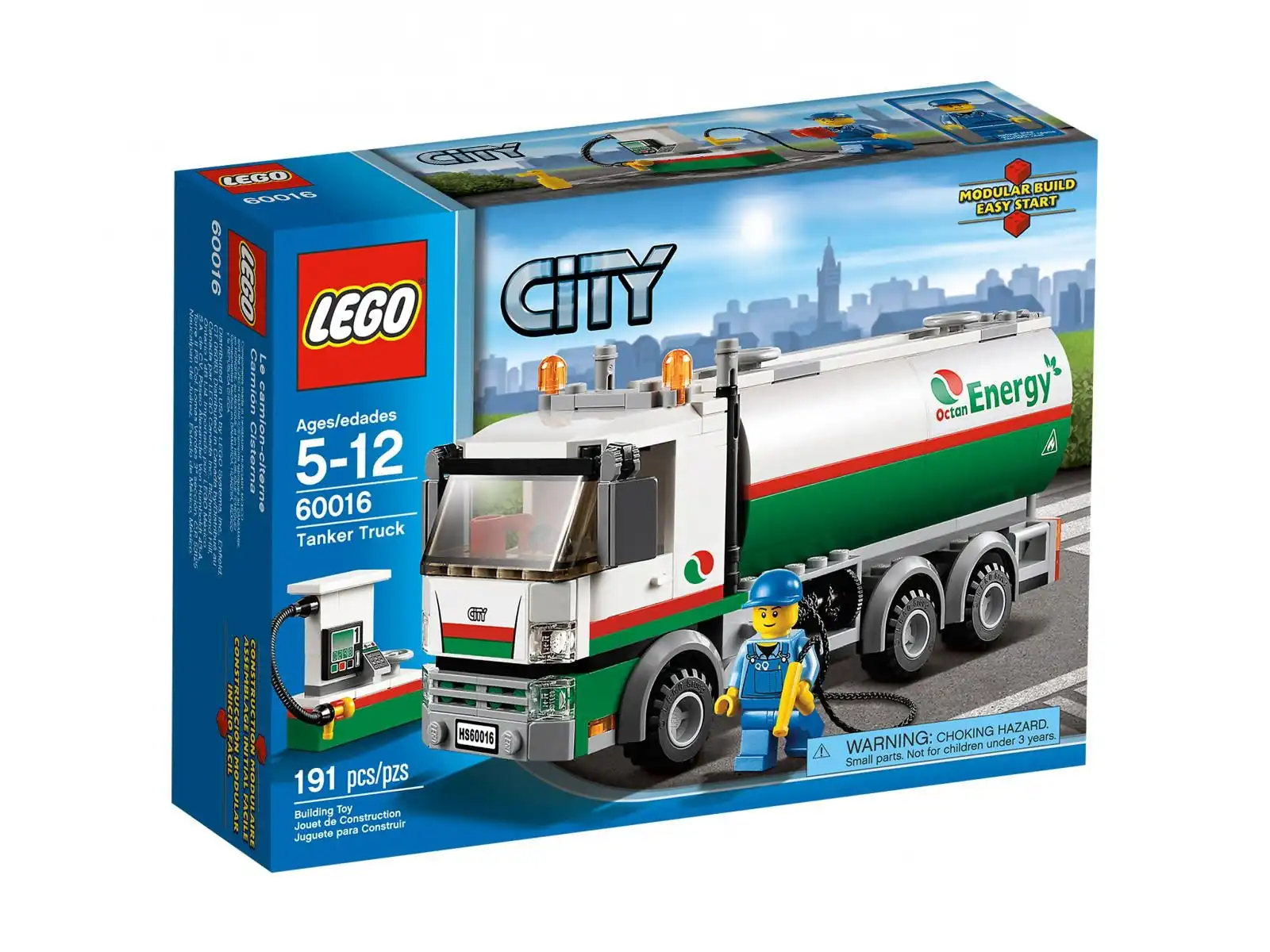 Zestaw LEGO City - Cysterna trafił do sprzedaży w 2013 roku. Numer katalogowy tego zestawu to 60016. Zawiera 191 klocków LEGO. W modelu znajdziesz też 1 minifigurkę. Nazwa zestawu w języku angielskim LEGO City - Tanker Truck. Grupa wiekowa tego produktu to 5+.