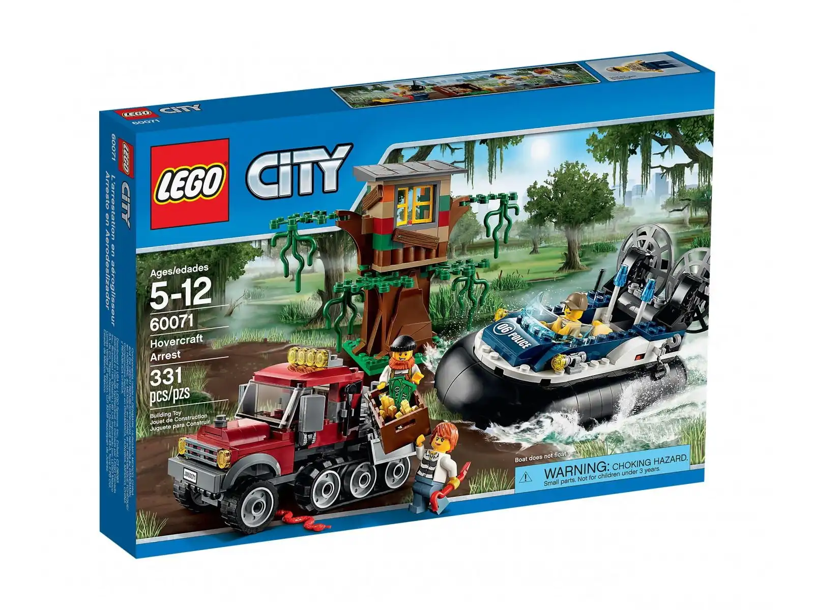 Złoczyńcy są zajęci ukrywaniem łupów w swojej kryjówce na drzewie głęboko na bagnach. Uważają, że nikt nie dogoni ich potężnego, pół gąsienicowego pojazdu. Jednak nie zdają sobie sprawy, że lada moment przybędzie policja w swoim najszybszym pojeździe wodnym — policyjnym poduszkowcu!