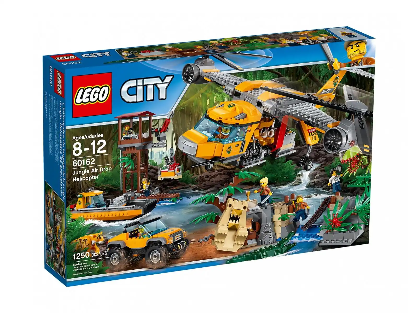 Zobacz, co czeka na Ciebie na miejscu badań w dżungli: wrak samolotu z otwieranym kokpitem, helikopter-amfibia z kokpitem na minifigurkę, obracanymi śmigłami i wyciągarką, wytrzymała terenówka obserwacyjna z miejscem na minifigurkę w kabinie, składanym ramieniem żurawia, miejscem obserwacyjnym i uchwytem na motocykl z tyłu, a także amfibia z miejscem na minifigurkę w kabinie, jaskinia i świątynia do zbudowania. Zestaw zawiera też siedem minifigurek oraz figurki lamparta, krokodyla, węża, żaby i dwóch pająków.