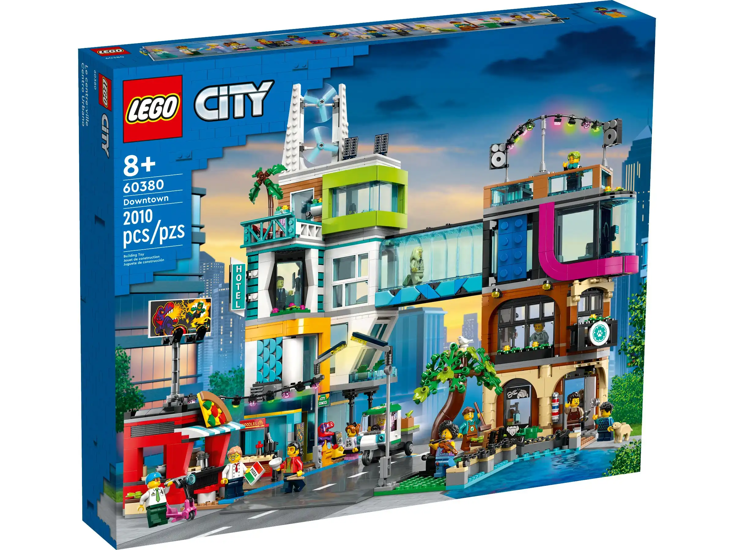 Podaruj swojemu małemu bohaterowi niesamowitą okazję do budowania i nauki dzięki zestawowi LEGO® City Śródmieście (60380). W tym niesamowitym zestawie z pomieszczeniami, które można łączyć, znajduje się zakład fryzjerski, klinika weterynaryjna, studio blogerskie, dyskoteka na dachu, sklep z komiksami, sklep techniczny, pokój woźnego i hotel. Ponadto znajdziesz w nim park, strefę ze street-foodem, 14 inspirujących postaci oraz płytę drogową LEGO, aby połączyć model z innymi zestawami z serii LEGO City.