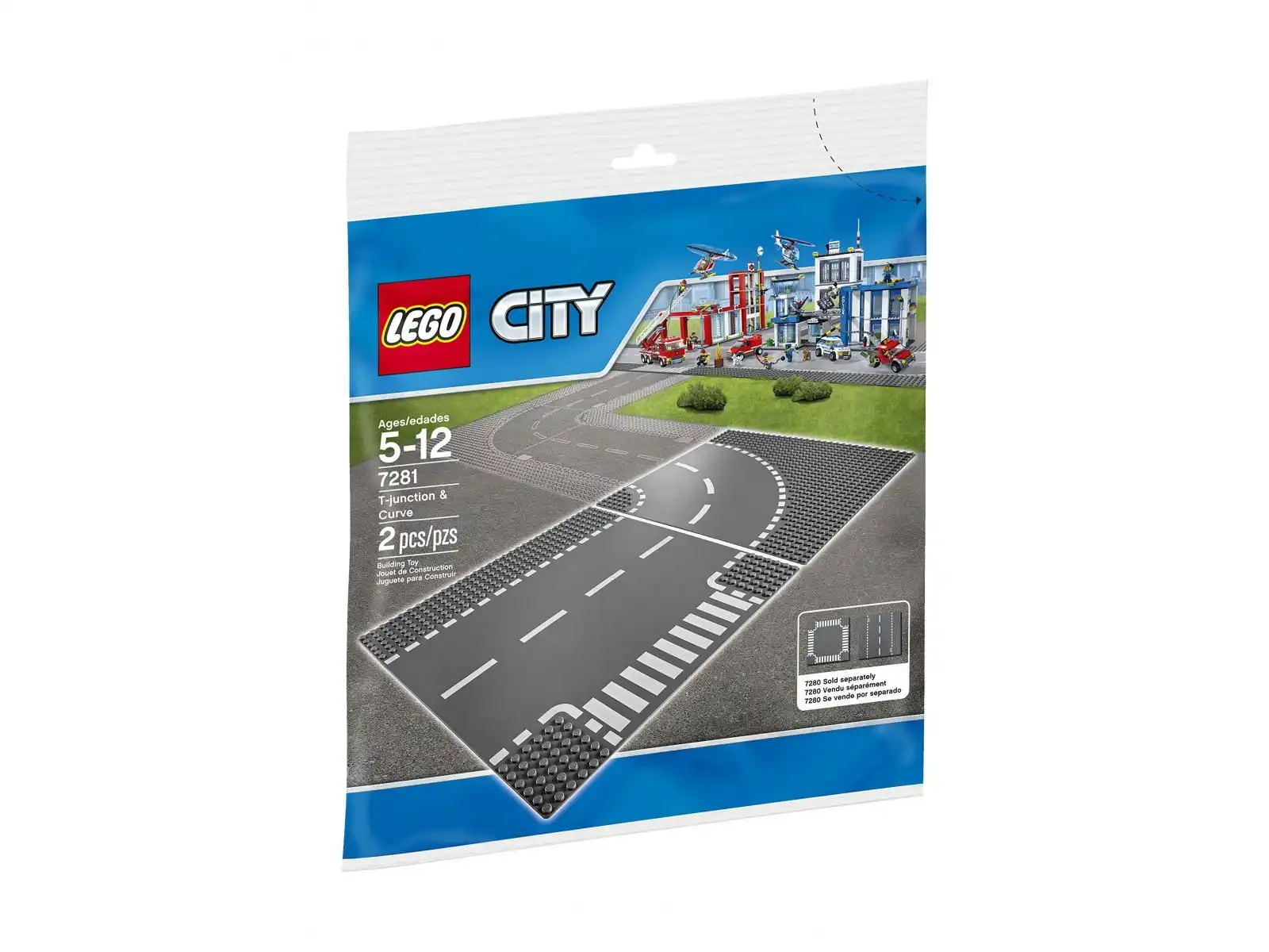 Ten zestaw płytek pozwoli rozbudować miasto LEGO® o skrzyżowanie i zakręt. Zawiera jedną płytkę ze skrzyżowaniem w kształcie litery T i jedną z zakrętem.