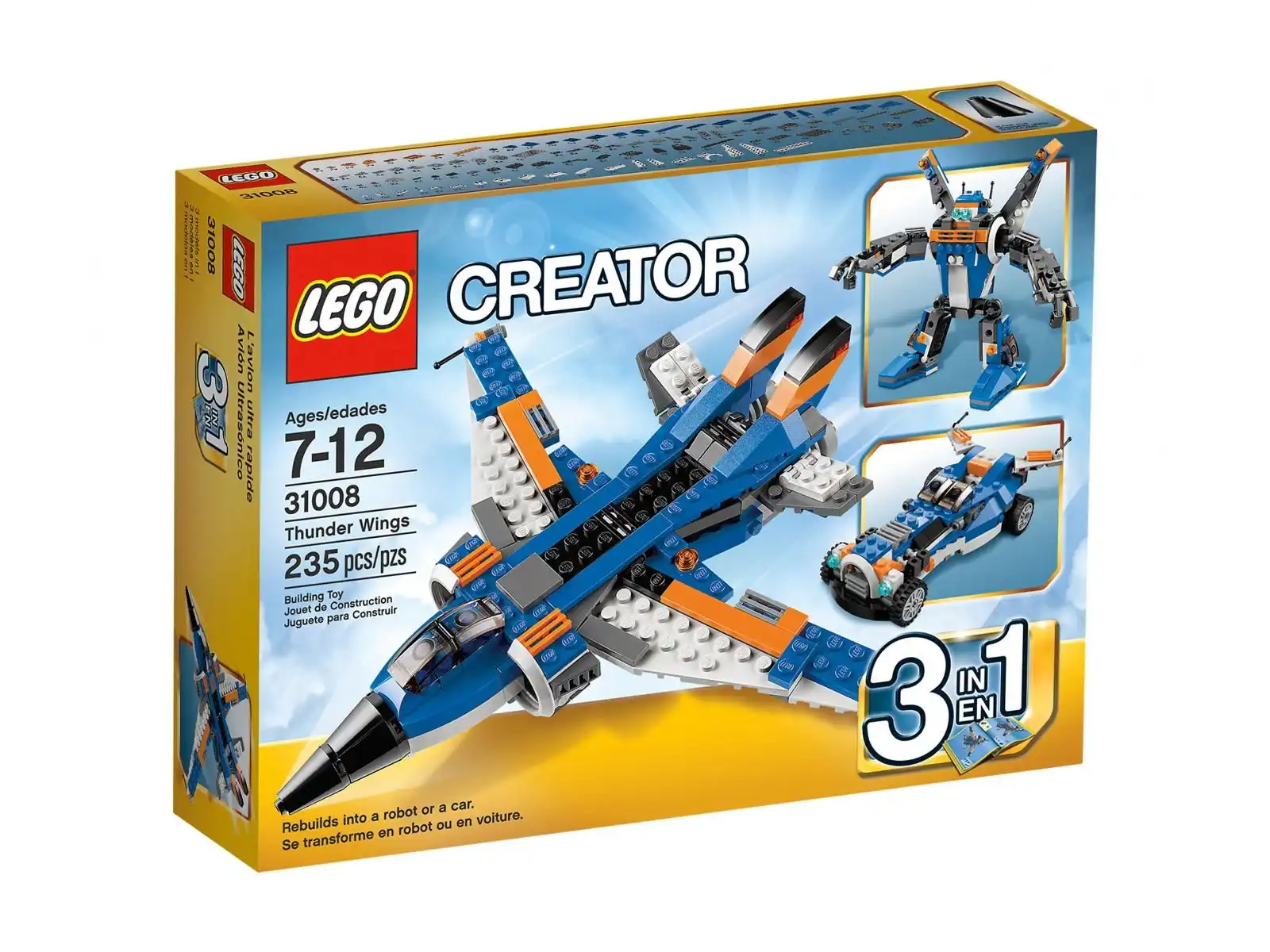 Jest to model „3 in 1” - można go przebudować na wytrzymałego robota o ruchomych kończynach lub w futurystyczny, eksperymentalny samochód z zamontowanym pod kątem spojlerem i oponami z prawdziwej gumy.