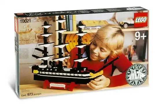 Model jest skonstruowany z klasycznych klocków LEGO, więc nawet zwinięte na masztach żagle są zbudowane z klocków, a nie materiałowych żagli. W zestawie znajduje się też podstawka z nazwą żaglowca.