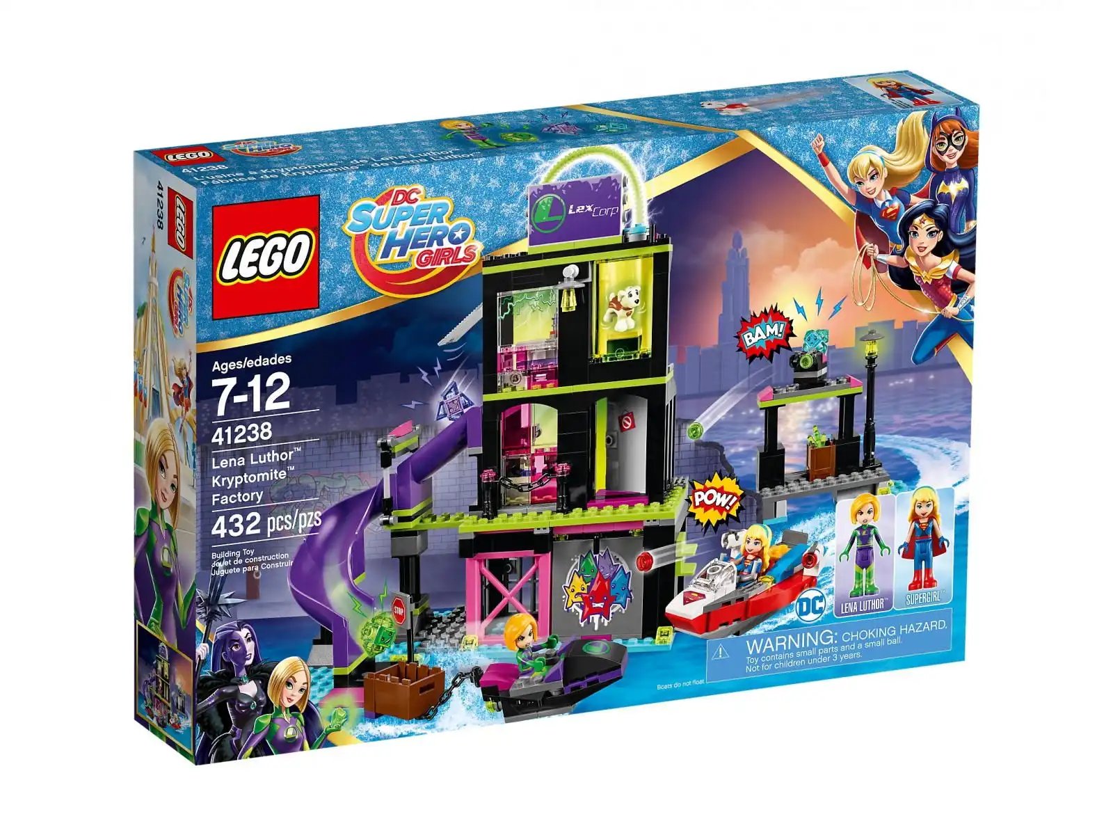 Dołącz do emocjonującego świata LEGO® DC Super Hero Girls™ — pomóż Supergirl™ pokonać Lenę Luthor™ w fabryce Kryptomitów™! Ten rewelacyjny zestaw zawiera trójpoziomową fabrykę z laboratorium, podajnik Kryptomitów ze zjeżdżalnią, kryształ, drzwi ewakuacyjne, celę więzienną, miotacz na dachu, pomieszczenie do „pobierania mocy”, a także łódkę ewakuacyjną Leny Luthor, łódkę Supergirl z dwoma miotaczami klocków, figurkę Krypto™ i trzy figurki Kryptomitów.