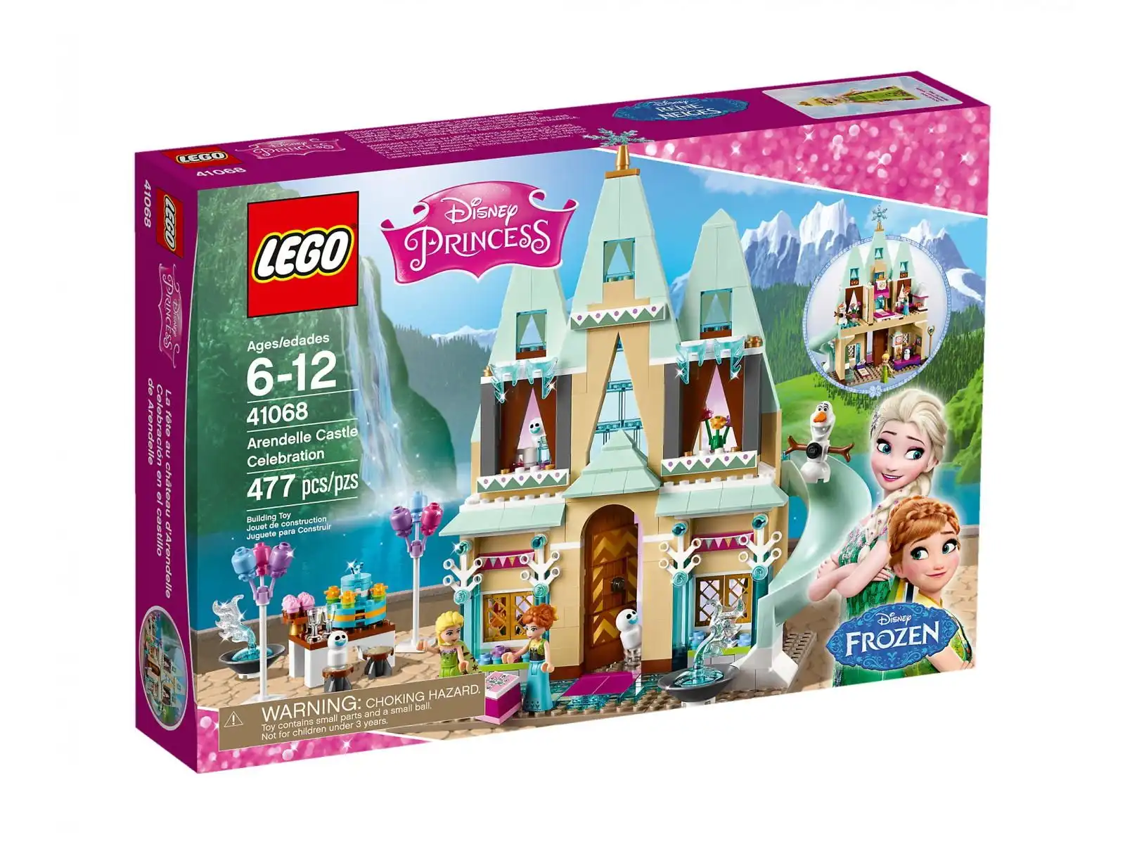 Wkrocz do świata filmu „Kraina lodu” Disneya i odkryj radość budowania wraz z Elsą, Anną i Olafem. Zestaw jest pełen detali inspirujących do zabawy w odtwarzanie scenek z filmów „Kraina lodu” i „Gorączka lodu”, a także wymyślania własnych przygód — jest tu piękny zamek Arendelle z lodową komnatą, sypialnia Anny i dachowa zjeżdżalnia. Zawiera minilaleczki Elsy i Anny oraz Olafa i 3 Bałwanki.