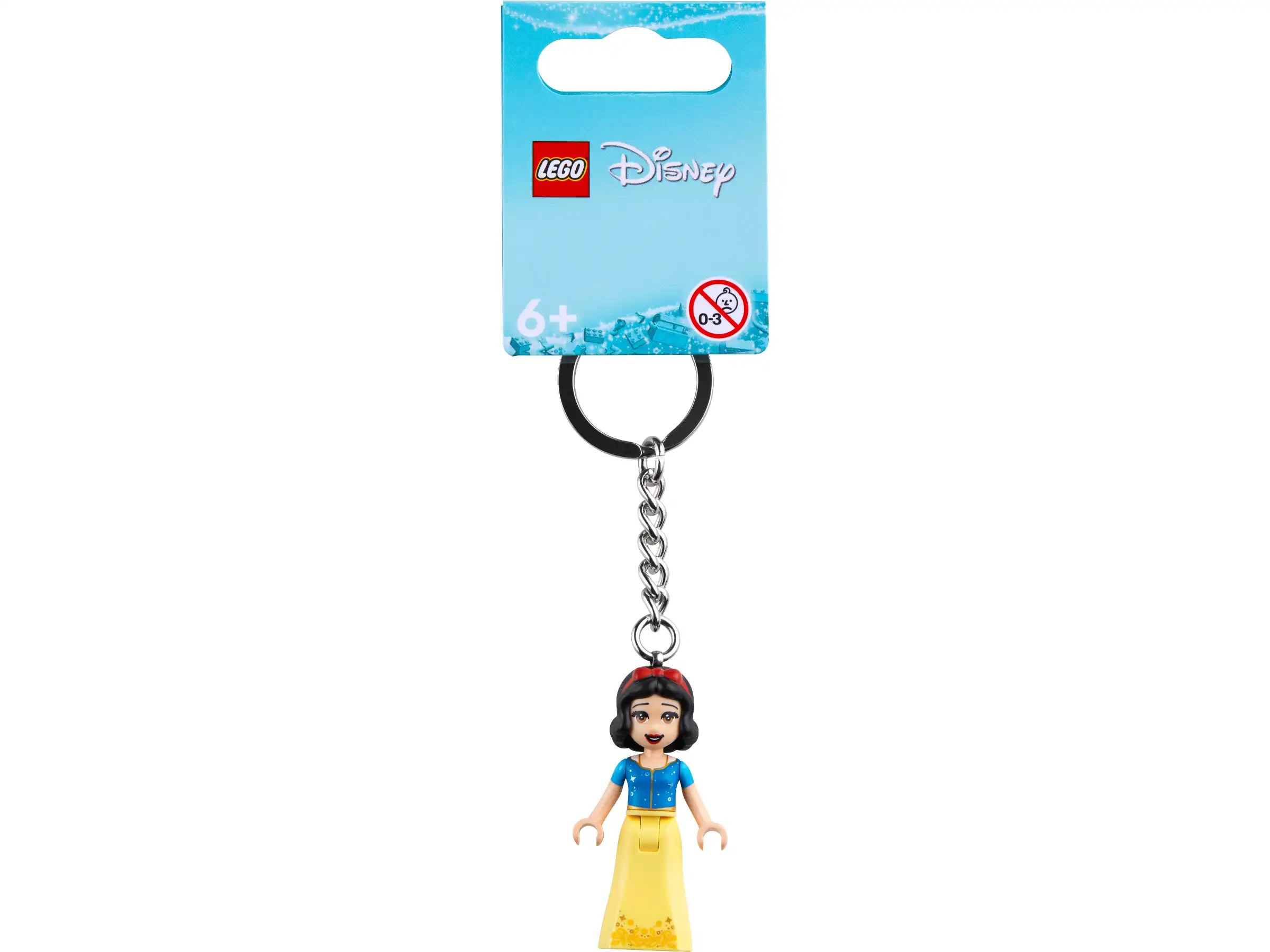 - Breloczek z minilaleczką LEGO®│Disney — minifigurka Królewny Śnieżki jest przymocowana do wytrzymałego metalowego łańcuszka z kółkiem i nie można jej odczepić