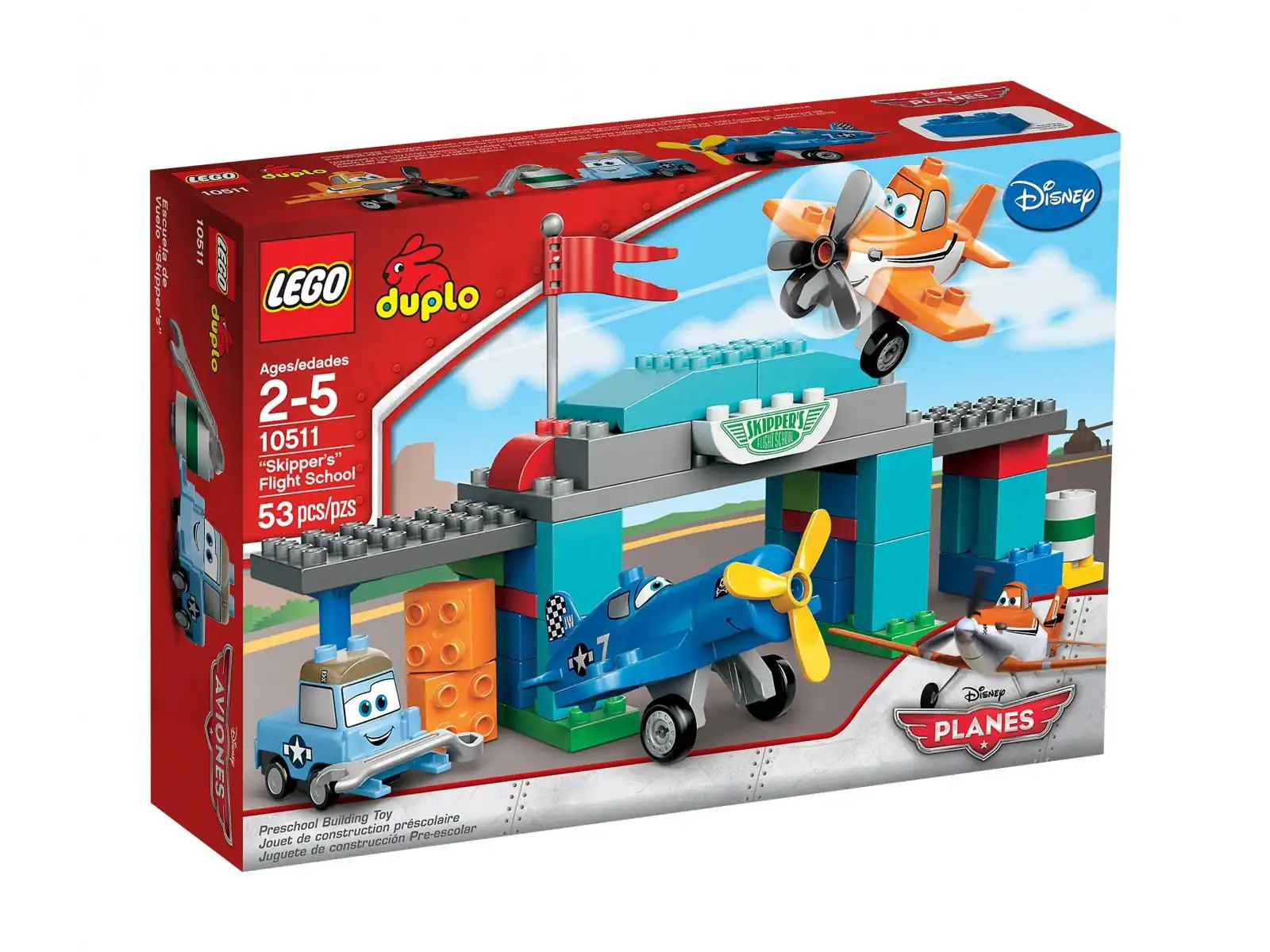 • Zawiera postacie Skippera, Dusty’ego i Sparky’ego z serii LEGO DUPLO Samoloty Disneya.