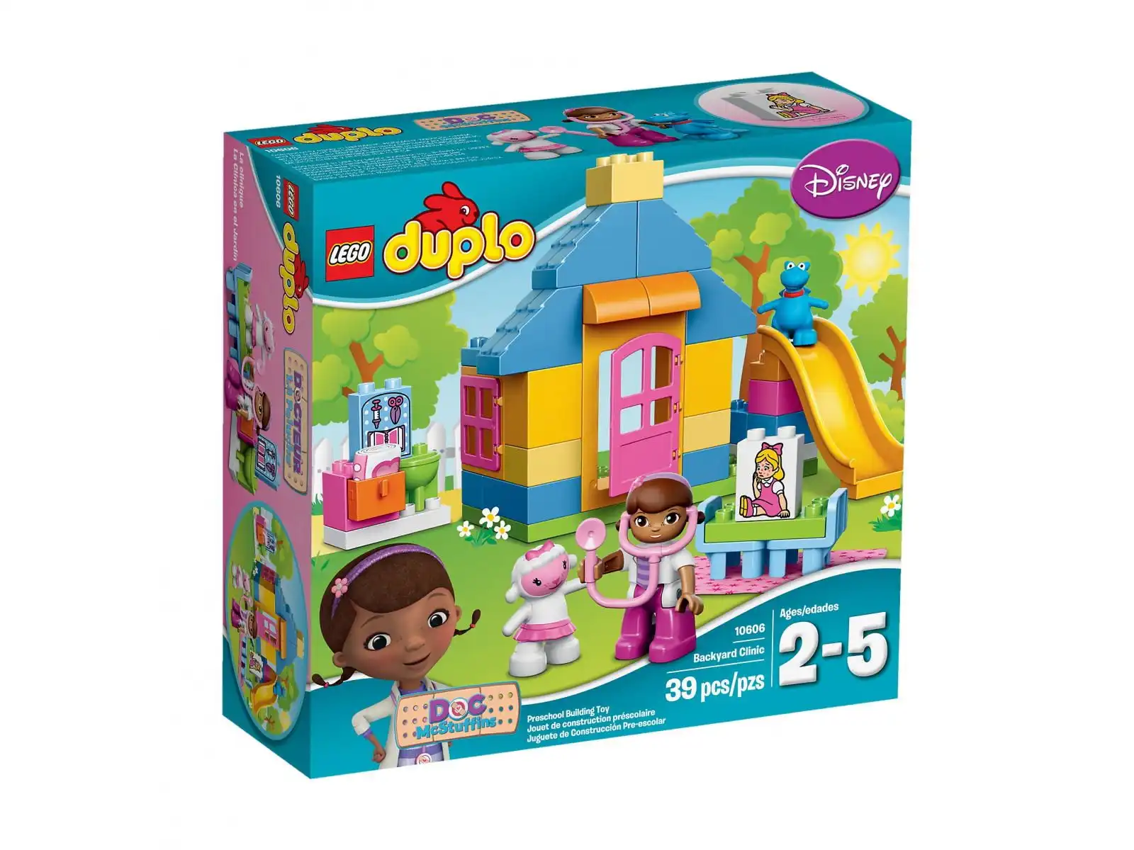 To zestaw barwny i wesoły. Różnorodność klocków przyciąga uwagę: zjeżdżalnia, umywalka, szafeczka, łóżko dla pacjenta, i doktor Dosia ze stetoskopem. Wszystko tworzy ciekawy zestaw który zainteresuje dzieci w wieku 2-5 lat.W zestawie: 39 klocków 3 figurki instrukcja
