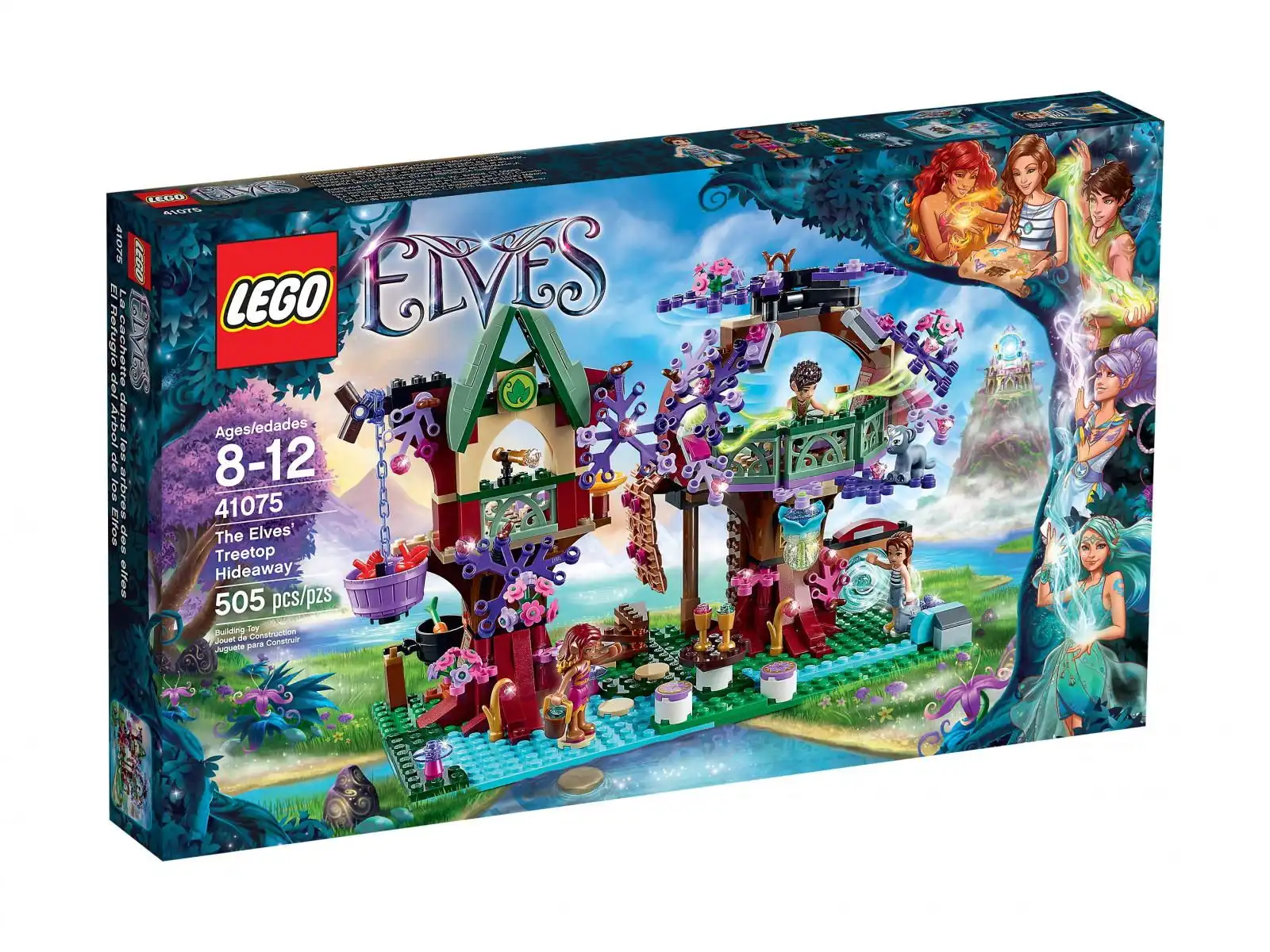 Wkrocz wraz z Emily Jones do magicznego świata LEGO® Elfów. Podczas spaceru po ogrodzie swojej babci Emily trafia na magiczny portal, który przenosi ją do kryjówki elfów na drzewie w zupełnie nowym świecie. Będąc poza światem ludzi, Emily musi rozejrzeć się po okolicy i uzyskać pomoc od Azari Firedancer i Farrana Leafshade — elfów ognia i ziemi. Zejdź wraz z Farranem po magicznej drabinie i daj się oprowadzić po jego niezwykłym domu. Podczas gdy Emily będzie prosić Elfy o pomoc w powrocie do świata ludzi ugotuj na ogniu zupę marchewkową i poczęstuj wszystkich. Za pomocą magicznej windy z wiadrem poślij trochę jedzenia do domku na drzewie dla młodej pantery Enki. Następnie poczekaj na przybycie elfek wody i wiatru — Emily będzie potrzebować również ich pomocy! W zestawie 3 minilaleczki: Emily Jones, Azari Firedancer i Farran Leafshade, a także młoda pantera Enki.