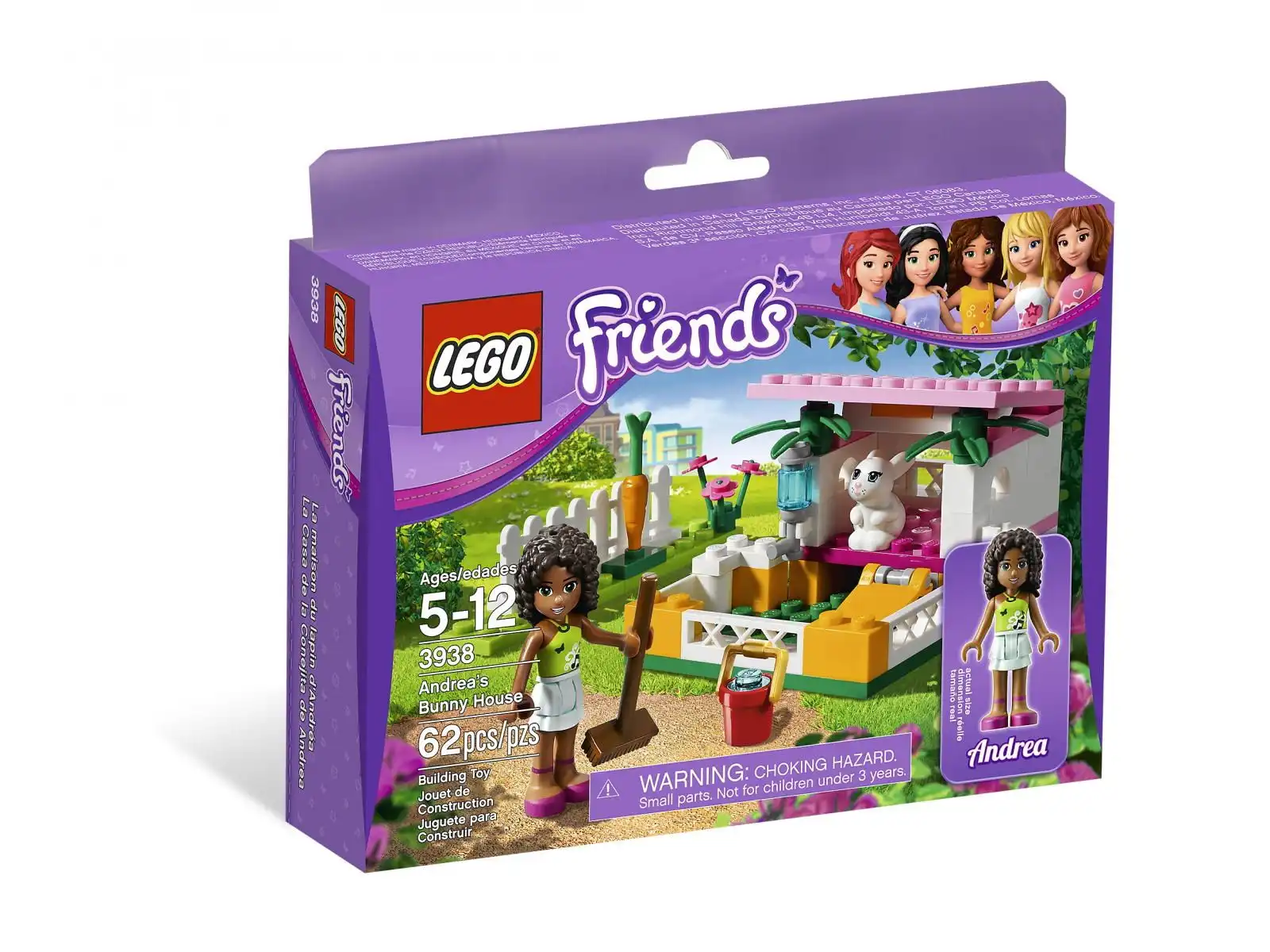 Zestaw LEGO Friends - Domek królika trafił do sprzedaży w 2012 roku. Numer katalogowy tego zestawu to 3938. Zawiera 62 klocków LEGO. W modelu znajdziesz też 1 minifigurki. Nazwa zestawu w języku angielskim LEGO Friends - Andrea's Bunny House. Grupa wiekowa tego produktu to 5+.