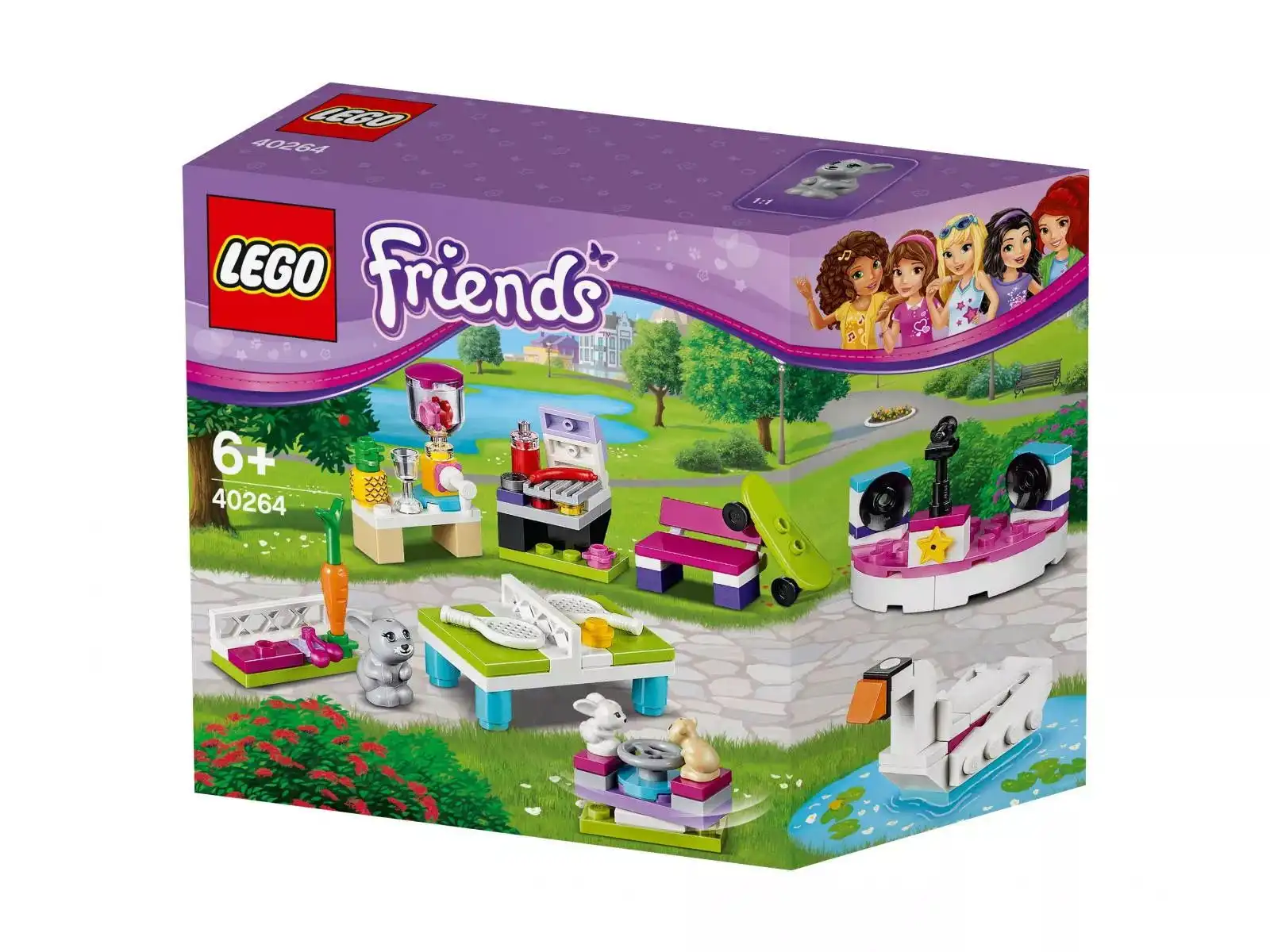 Ten poręczny zestaw związanych z Heartlake akcesoriów do zbudowania będzie doskonałym dodatkiem do każdej kolekcji LEGO Friends. Zbuduj scenę, na której przyjaciółki będą mogły występować, deskorolkę, aby mogły ćwiczyć triki, stół do ping ponga, stoisko z sokami i inne akcesoria ze świata LEGO Friends! W pudełku znajdziesz nawet parę słodkich, małych zwierzątek, którymi możesz się zaopiekować.