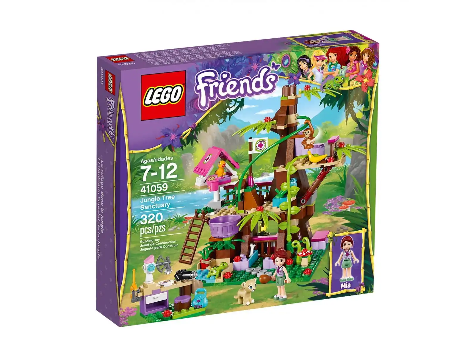 Zestaw zawiera 320 elementów, aby skonstruować scenę dżunglowego schroniska dla zwierzątek uratowanych przez postacie z serii LEGO Friends.