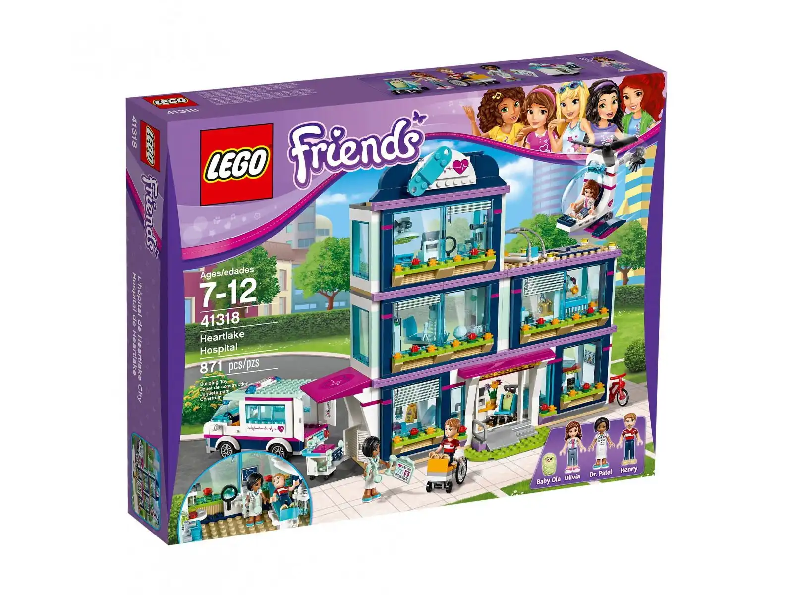 Szpital w Heartlake z serii LEGO® Friends ma trzy kondygnacje wypełnione sprzętem medycznym do pomagania pacjentom. Jest tu również żłobek z kołyską i wagą, pracownia rentgenowska ze skanerem i negatoskopem do przeglądania zdjęć oraz gabinet z łóżkiem i mikroskopem do badania próbek. W poczekalni na parterze znajdziesz ladę recepcyjną i automat z przekąskami, a także wejście na oddział ratunkowy dla pacjentów przywiezionych karetką lub helikopterem. W zestawie trzy minilaleczki oraz figurka noworodka.