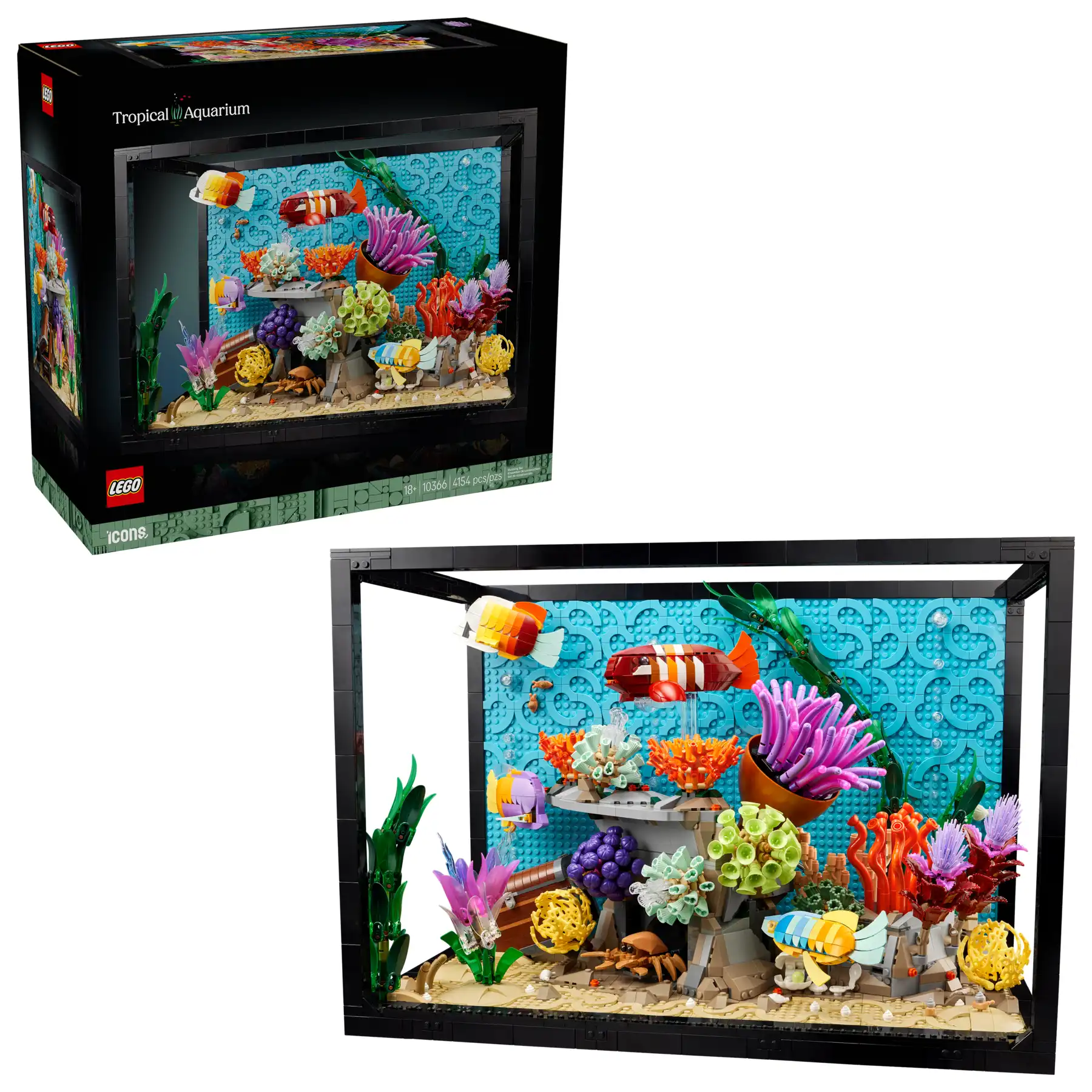 - Fajny prezent na święta lub urodziny — spraw przyjemność sobie lub bliskiej osobie dzięki temu zestawowi LEGO® Icons Tropikalne akwarium dla dorosłych miłośników ryb