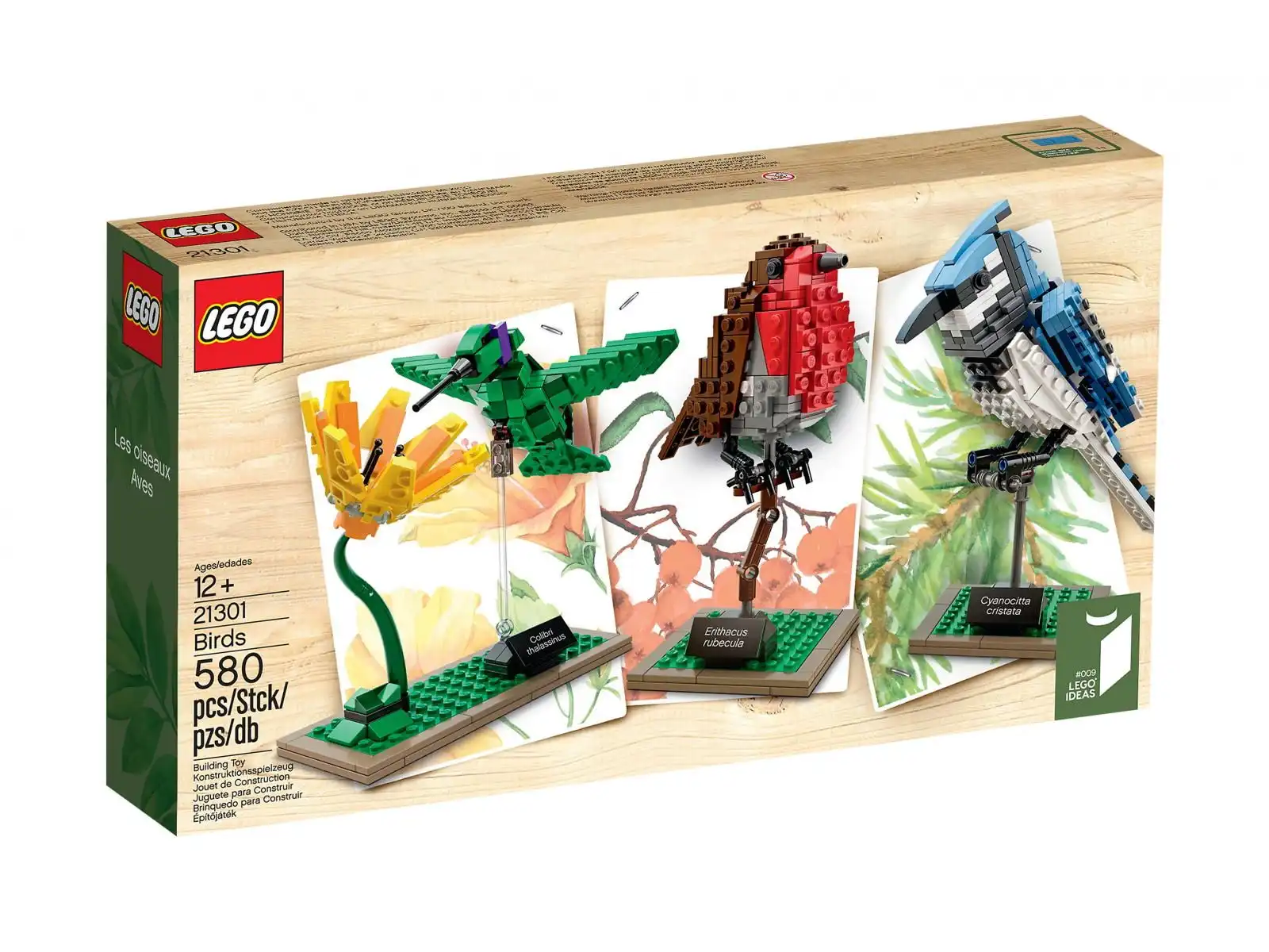 Odłóż lornetkę i zbliż się do natury dzięki tym dopracowanym modelom LEGO® znanych ptaków! Zostały ona stworzone przez zapalonego ogrodnika i ornitologa Thomasa Poulsoma i wybrane przez użytkowników witryny LEGO Ideas. Każdy ptak pochodzi z innego kontynentu: rudzik z Europy, modrosójka błękitna z Ameryki Północnej oraz koliber z Ameryki Południowej. Do tych pięknych i szczegółowych modeli dołączone są stojaki z nazwą gatunku, więc ptaki mogą być prezentowane na wystawie lub, pod zdjęciu ze stojaka, służyć do zabawy. W zestawie znajdują się również trzy broszury zawierające wiele informacji o każdym z tych fascynujących gatunków oraz o twórcy samych modeli.