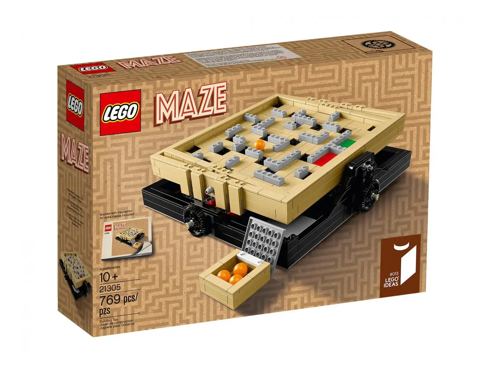 Labirynt z zestawu „2 w 1” można przerobić na labirynt w stylu klasycznym lub średniowiecznym. Można też uruchomić wyobraźnię i budować własne modele do pokonania. Ten klasyczny zestaw został zaprojektowany przez fana klocków LEGO®, Jasona Allemanna z Kanady i wybrany przez członków społeczności LEGO Ideas. Zawiera sterowany pokrętłami mechanizm, który przechyla labirynt i w ten sposób pozwala odpowiednio pokierować kulką, a także zdejmowany pojemnik z 4 pomarańczowymi kulkami oraz blokadę podróżną, która ułatwia transport. Zestaw jest odpowiedni dla osób w wieku od 10 lat, a dzięki ciekawym podpowiedziom projektanta, które znajdują się w dołączonej do niego broszurce, możesz go przebudować tak, żeby jego pokonanie było łatwiejsze lub trudniejsze.