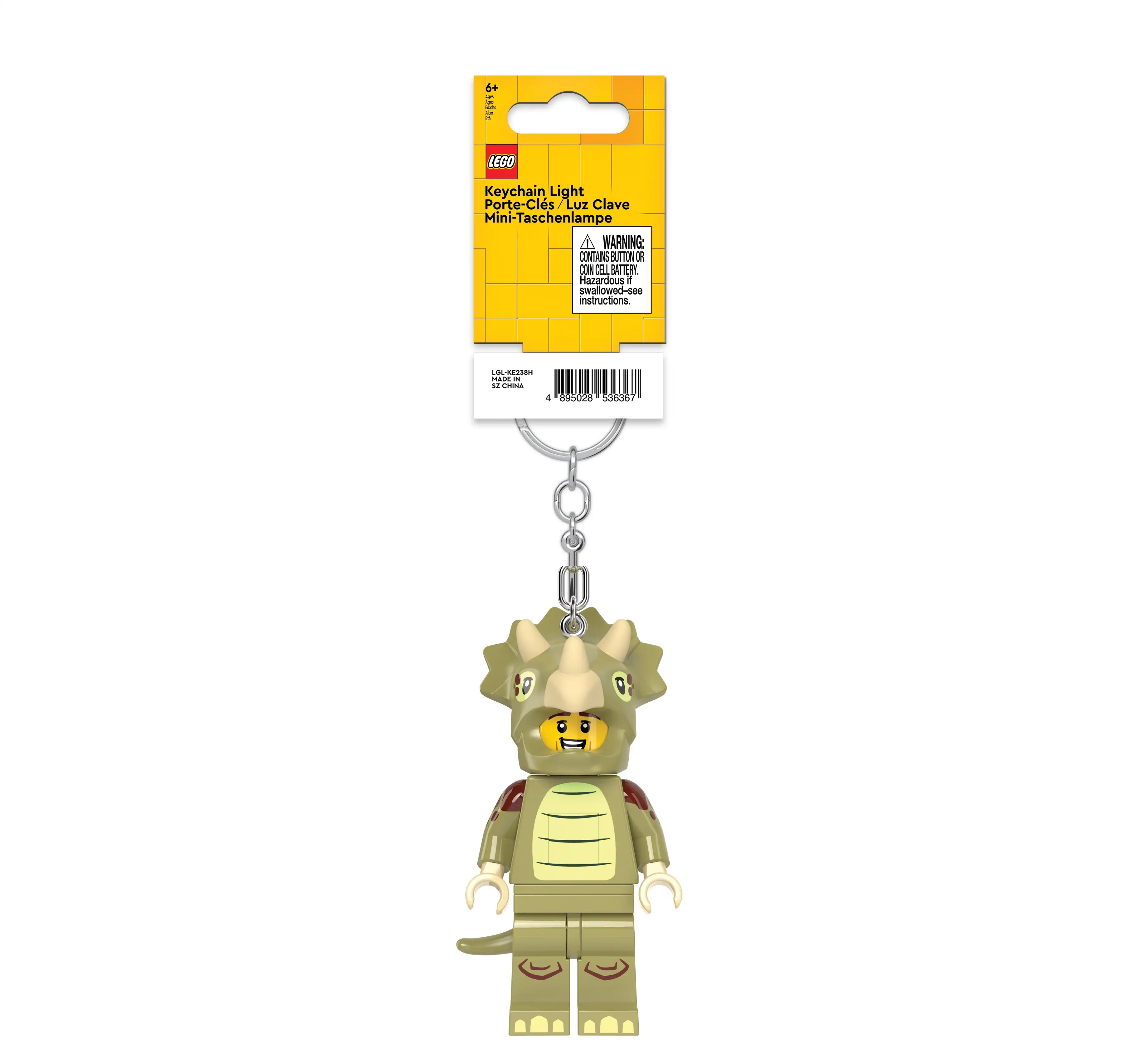 - Gadżet dla miłośników dinozaurów w wieku od sześciu lat— breloczek-latarka zawiera dużą, ruchomą minifigurkę LEGO® fana triceratopsów w kostiumie z dwiema jasnymi diodami LED w stopach (baterie w zestawie)