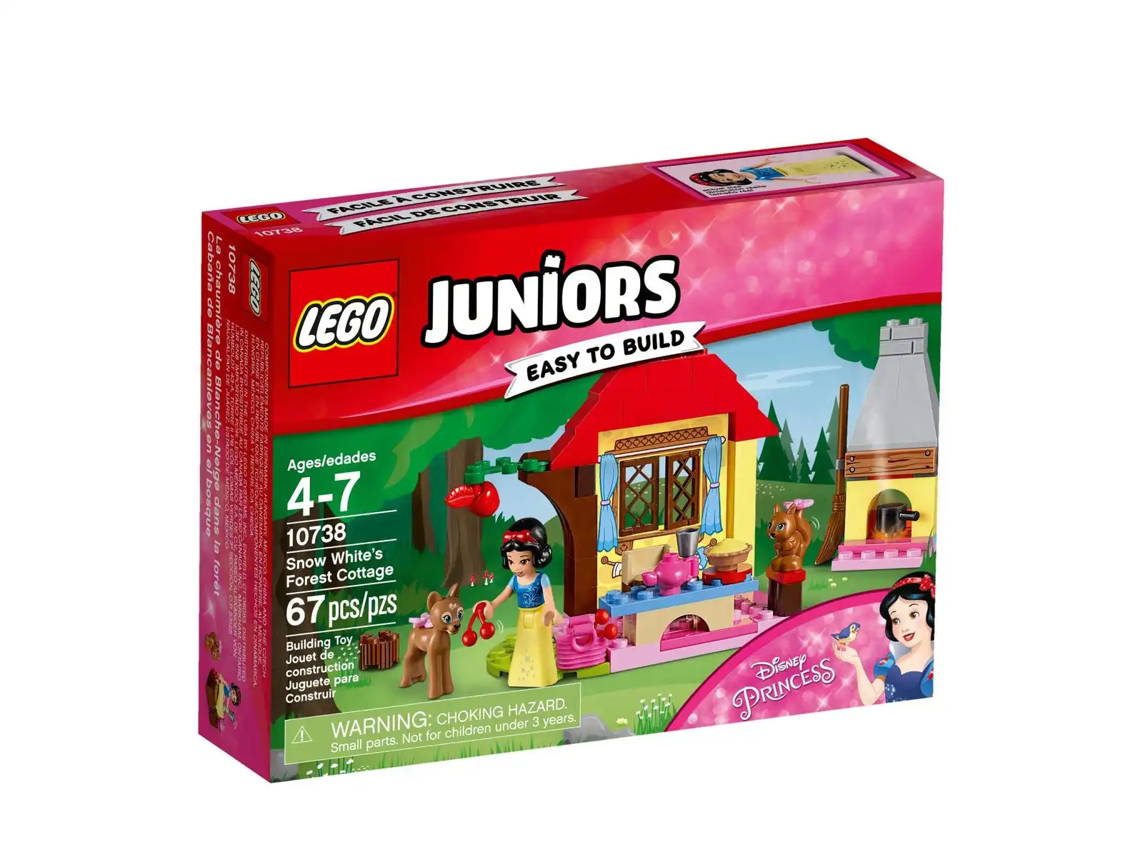 Odwiedź Śnieżkę w jej leśnej chatce z piecem, kominem, drzewem owocowym i stołem piknikowym dla Śnieżki oraz jej zaprzyjaźnionych zwierząt. Zestaw zawiera proste instrukcje, które pomogą zacząć budowanie i zabawę, a dzięki dużym klockom młodsze dzieci będą czuły się pewniej podczas zabawy. Zestawy LEGO® Juniors są odpowiednie dla dzieci w wieku 4–7 lat. W zestawie jest minilaleczka oraz dwie figurki zwierząt.
