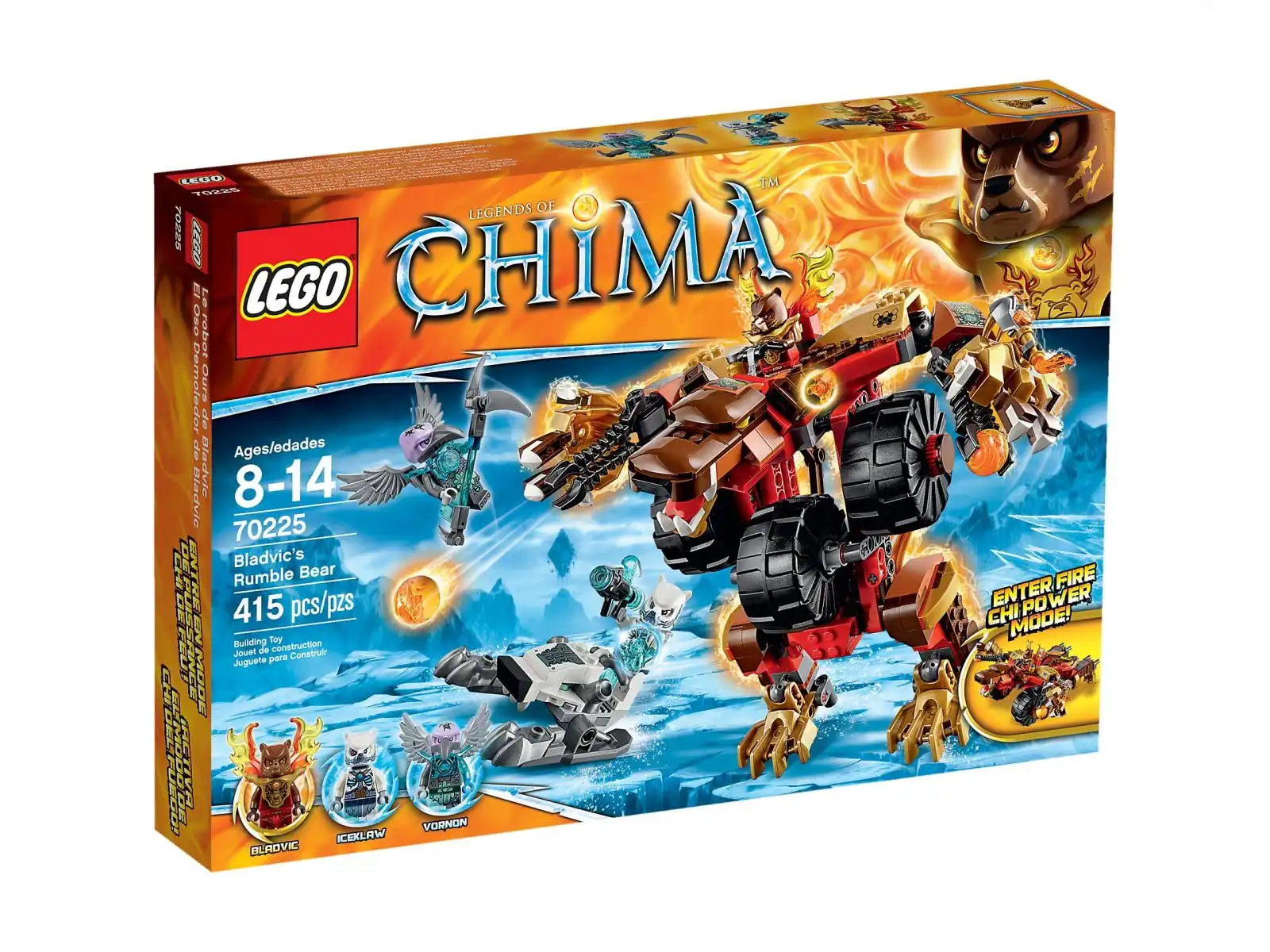 Iceklaw ukradł ładunek CHI i ucieka w superszybkich saniach lodowych. Pomaga mu sęp Vornon. W pościg wyrusza Bladvic w niesamowitym pojeździe, wyposażony w ognistą uprząż i ogniste skrzydła. Wystrzeliwuj kule z miotaczy i unikaj lodowych pocisków z mroźnego działka Iceklawa, a potem przekształć maszynę z trybu ognistego chi w tryb myśliwca. Niesamowita machina bojowa Bladvica ma ruchome kończyny i głowę, a jej potęga pozwala pokonać niemal każdego wrogiego wojownika! Zestaw zawiera 3 minifigurki z wyborem broni: Bladvica, Iceklawa i Vornona.