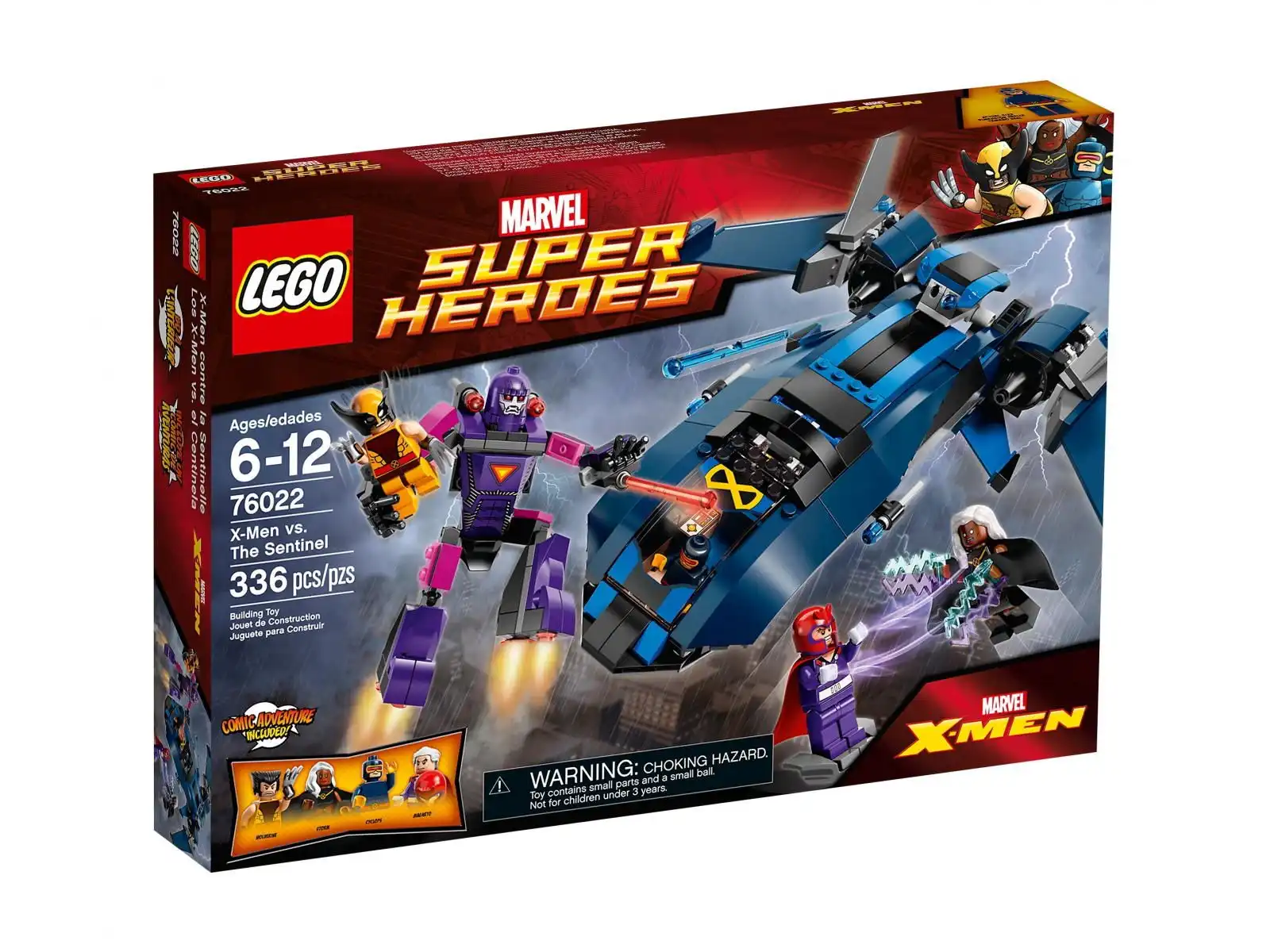 Pomóż Wolverinowi uciec od Sentinela w myśliwcu Blackbird! Magneto wykorzystuje swoje moce, aby przejąć kontrolę nad Sentinelem w celu uwięzienia Wolverine'a. Stań do walki razem z Wolverinem i resztą X-Menów, unikając wystrzeliwanych obrotowych rakiet i wielkich laserów potężnego robota. Wsiądź do słynnego myśliwca Blackbird i razem ze Storm i Cyklopem rusz superbohaterowi na pomoc, wspomagając się wystrzeliwanymi rakietami i sprężynowym miotaczem. Uwolnij Wolverine'a z łap Sentinela, aby mógł wrócić do walki. W zestawie 4 minifigurki z akcesoriami: Wolverine, Cyklop, Storm i Magneto oraz figurka robota Sentinela.