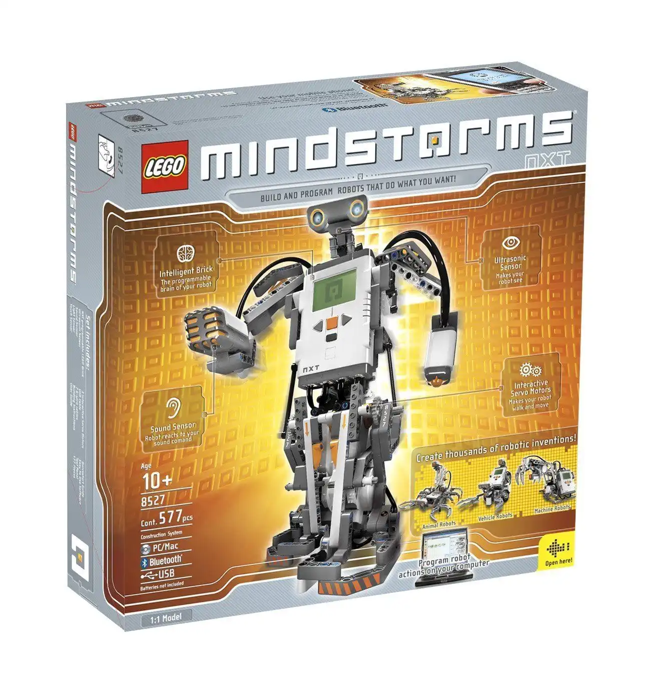 „MINDSTORMS® NXT” (8527) składa się łącznie z 577 części i waży łącznie 2,2 kilograma, łącznie z opakowaniem i instrukcją montażu. Szacowany czas budowy to od 1 do 2 godzin. Opakowanie ma wymiary około 38,4 x 38,4 x 11,4 centymetra. Po złożeniu model „MINDSTORMS® NXT” waży około 1,3 kilograma.