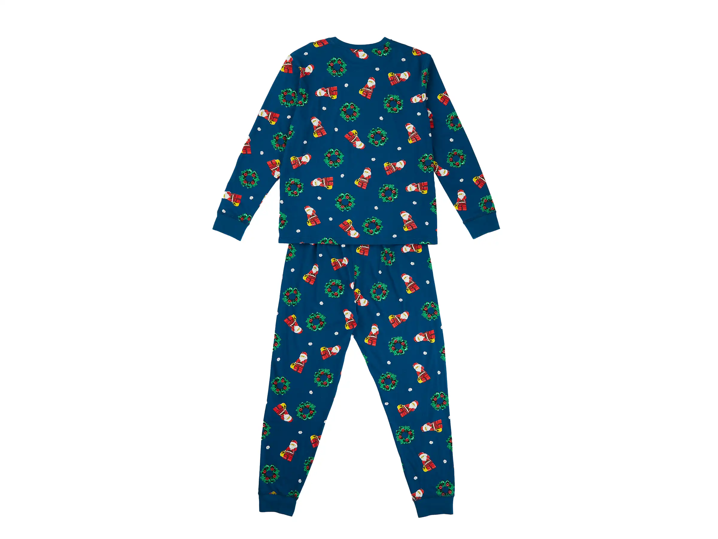Świętuj gwiazdkę w wielkim stylu w Piżamie dla dorosłych LEGO® w kolorze granatowym dla kobiet i mężczyzn. Ten dwuczęściowy, bawełniany komplet zdobią grafiki ze Świętym Mikołajem LEGO i wieńcami. Spodnie mają wygodną gumkę w pasie, a nogawki i rękawy zakończono ściągaczami, aby nie podwijały się podczas snu. Piżamę można prać w pralce. To świetny pomysł na prezent gwiazdkowy dla kobiet i mężczyzn!