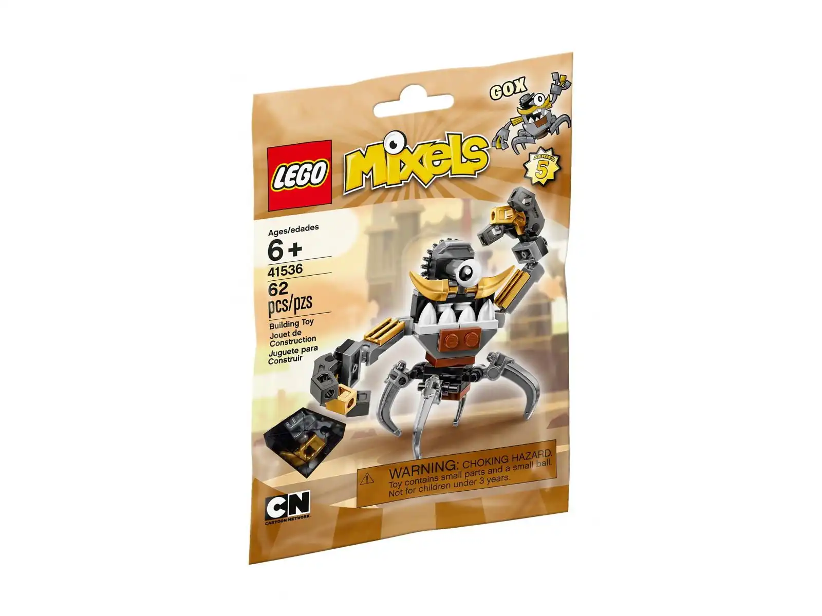 Gox to magnat biznesowy z innej epoki — epoki silników parowych! Należy on do plemienia Klinkerów, ma złote wąsy, obrotowe oko i szponiaste stopy. Nie bierze jeńców. Jako Mixel o uprzywilejowanej pozycji, Gox oczekuje traktowania po królewsku. Jego aktywna postawa sprawia, że nie sposób się z nim nudzić!