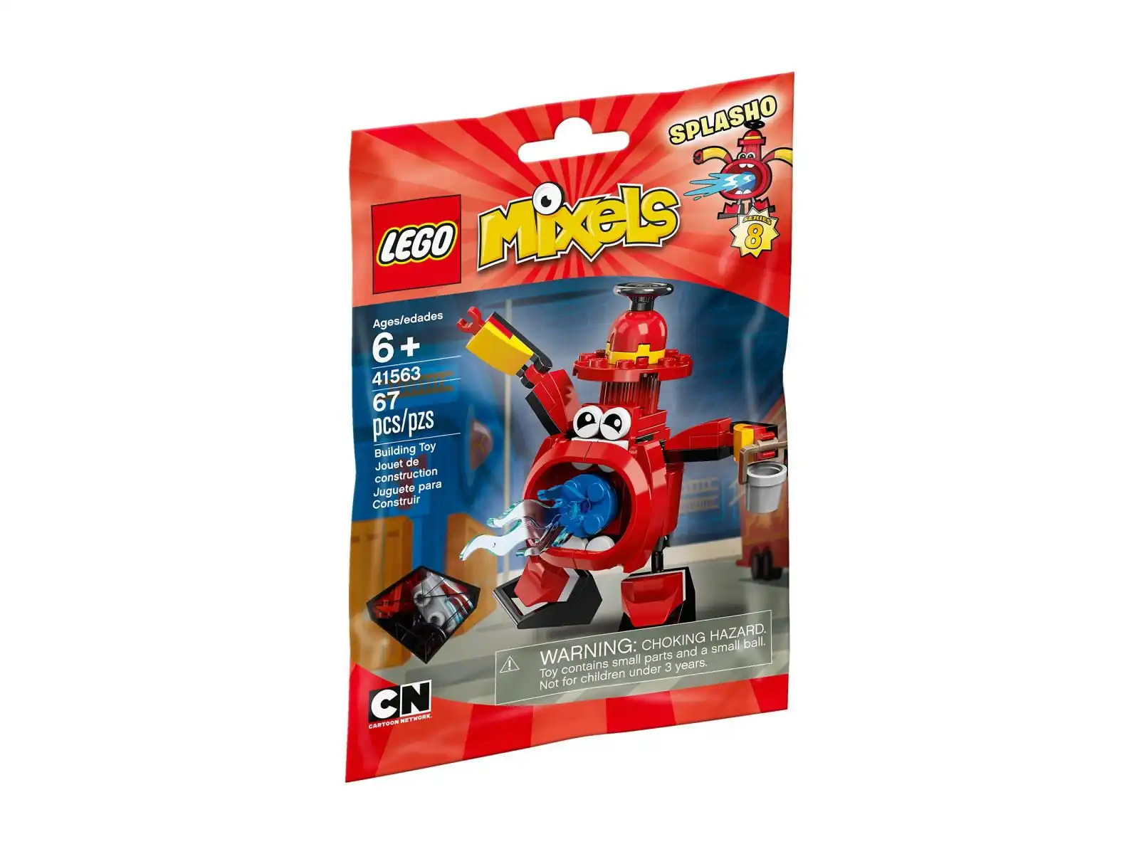 Splasho wygląda jak hydrant i dowodzi plemieniem MCFD. Ma zmrużone oczy, wielkie usta z przezroczystym, niebieskim elementem wody, ruchome kończyny oraz wiadro. W serii 8. LEGO® MIXELS™ znajdziesz w sumie 3 strażaków z plemienia MCFD. Zbierz ich wszystkich, by mieć więcej zabawy z budowaniem i wymyślaniem historyjek oraz by móc zbudować MAX-a! Splasho możesz także połączyć z Lewtem z plemienia Pyrratz, którego znajdziesz w zestawie 41568. W ten sposób powstanie nowy, śmieszny MIX!