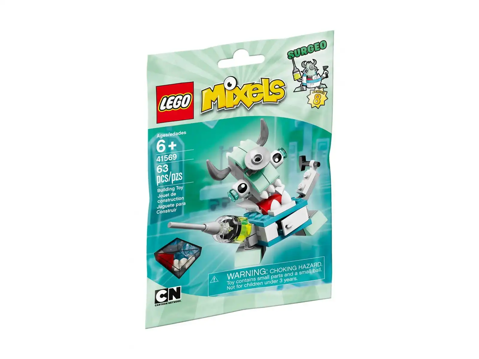 Przygotuj się do operacji wraz z Surgeo! Ten Mixel to chodząca szafka medyczna, zamiast ręki ma strzykawkę, a gdy chce coś wyrazić, obraca całą głowę o 180 stopni. Ma też młotek do badania odruchów. W 8. serii LEGO® MIXELS™ znajdziesz w sumie 3 przedstawicieli plemienia Medixów. Zbierz ich wszystkich, by mieć więcej zabawy z budowaniem i wymyślaniem historyjek oraz by móc zbudować MAX-a! Surgeo możesz także połączyć z Sharxem z plemienia Pyrratz, którego znajdziesz w zestawie 41566. W ten sposób powstanie nowy, śmieszny MIX!