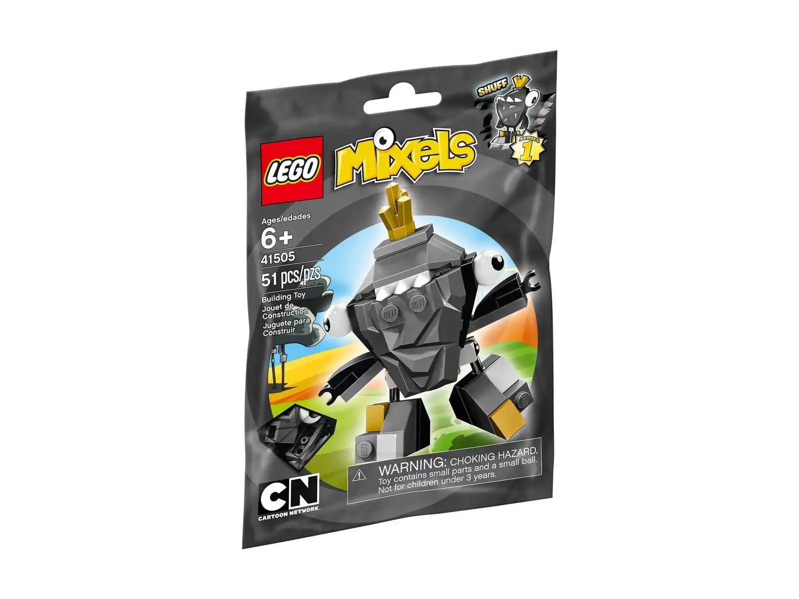LEGO Mixels 41505 Lego Mixels 41505 Shuff to zestaw klocków dla dzieci w wieku 6 lat i starszych, z serii Mixels. Zestaw składa się z 51 elementów, które po złożeniu tworzą postać Shuffa. Produkt posiada certyfikat CE, co oznacza, że jest zgodny z europejskimi standardami bezpieczeństwa. Należy jednak pamiętać, że nie nadaje się dla dzieci poniżej 36 miesięcy. LEGO Mixels 41505 Lego Mixels 41505 Shuff to doskonały wybór dla każdego fana klocków LEGO i serii Mixels.