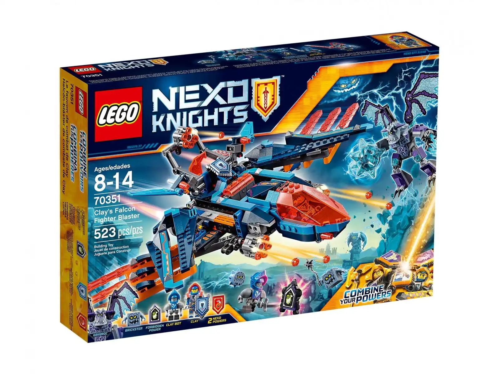 - Aby mieć jeszcze większą siłę ognia, myśliwiec zwiadowczy możesz połączyć z zestawem 70362 Bojowy ekwipunek Claya, a także z dowolnym innym zestawem kombinezonów bojowych z serii LEGO® NEXO KNIGHTS™.