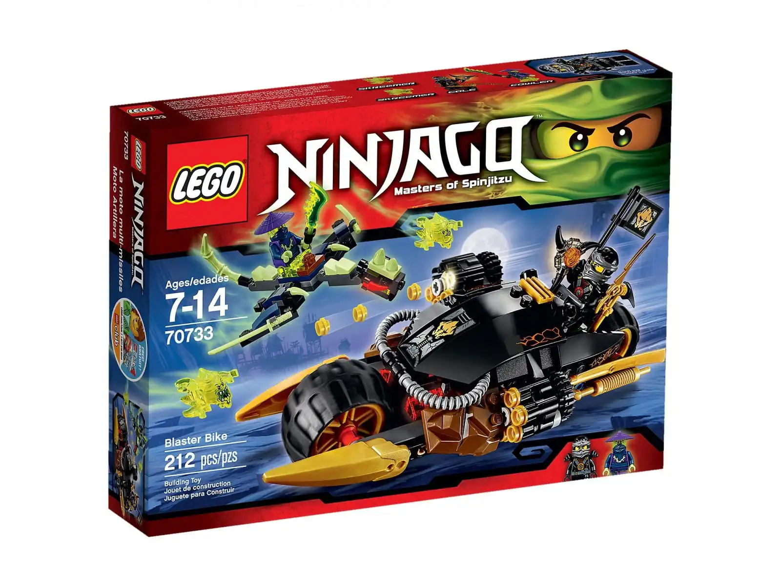 Ruszaj do walki na motocyklu Cole'a i ochroń aeroostrze! Wojownik-duch Cowler uzbrojony w śmiercionośny miecz duchów przystępuje do ataku z powietrza na grzbiecie swojego smoka-ducha. Wysuń swoje dwa niesamowite, sześciolufowe, szybkostrzelne działka, aby strącić latającą bestię. Postaraj się uciec dwóm Skreemerom chcącym zamienić Cole'a w ducha i nie pozwól, aby nieprzyjaciel położył łapska na aeroostrzu! W zestawie 2 minifigurki z bronią i dodatkiem: Cole i wojownik-duch Cowler.