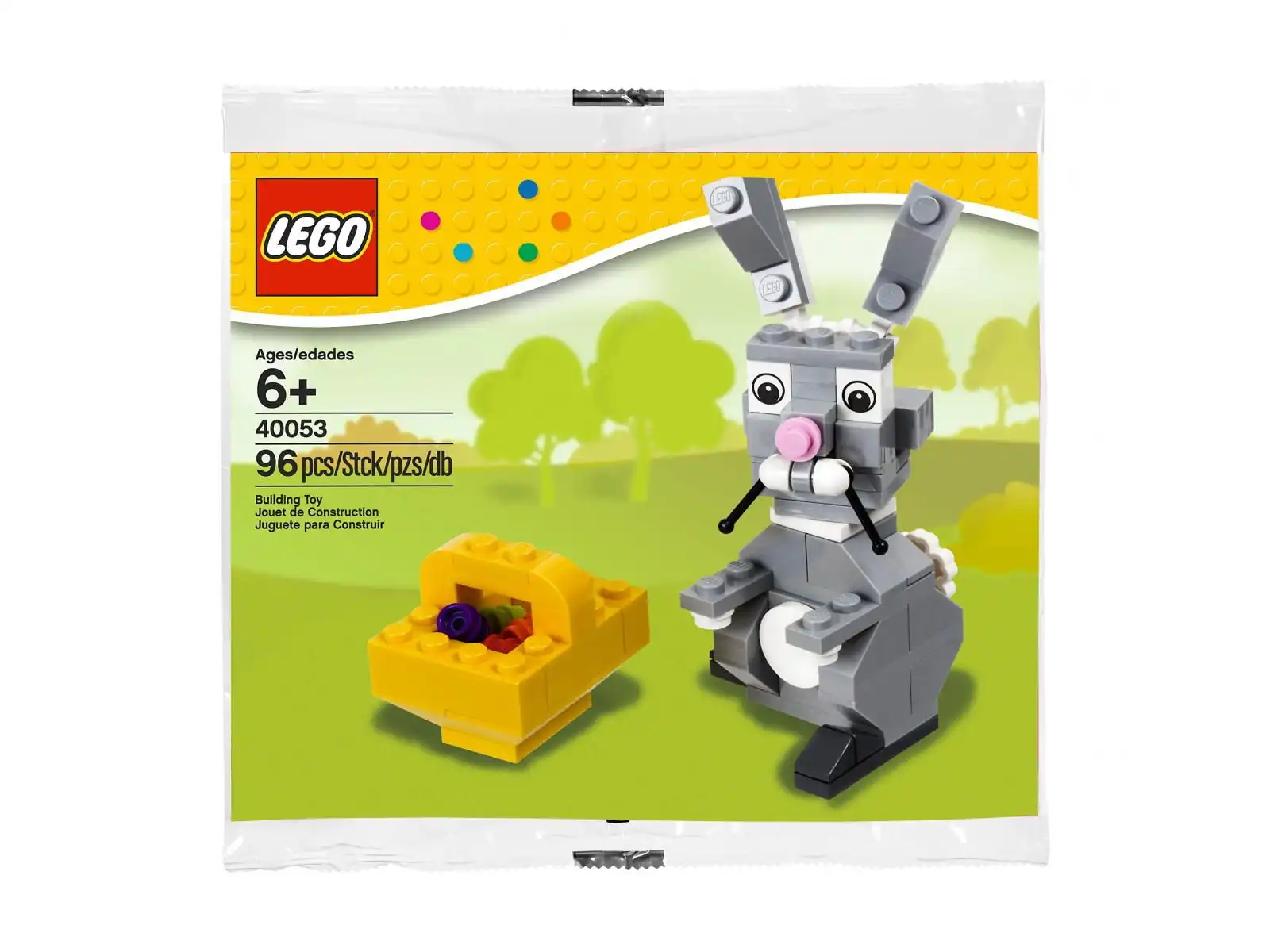 Zestaw zawiera 96 elementów, aby skonstruować model zajączka z koszyczkiem.
