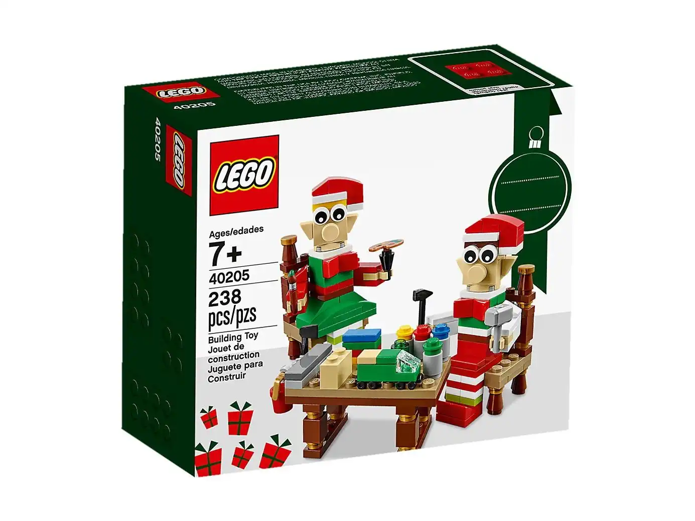 Pomóż uroczym elfom budować zabawki i inne prezenty pod choinkę, żeby wszystkie dzieci dostały je na czas! W tym świątecznym zestawie LEGO® znajdziesz 2 elfy z ruchomymi głowami i rękami, a także stolik, 2 krzesła, klocki narzędzi i prezenty do złożenia. To świetny prezent dla miłośników Bożego Narodzenia i zestawów do budowania LEGO.