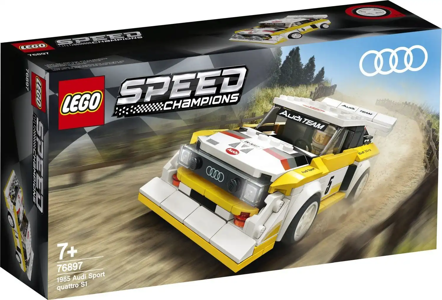 Samochód 1985 Audi Sport quattro S1 (76897) był jednym z królów wyścigów rajdowych grupy B. Fani wyścigów mogą teraz zbudować z klocków LEGO model tego uwielbianego samochodu. Zbuduj replikę ikony rajdów samochodowych, by uczcić 35. rocznicę modelu quattro. Nowe wcielenie klasycznego auta rajdowego!Model słynnego 1985 Audi Sport quattro S1 jest doskonałym odzwierciedleniem oryginału: ma żółto-białe nadwozie, silnik z przodu, wydatny zderzak i wielki tylny spojler. W komplecie z tą zabawką jest też minifigurka w kombinezonie rajdowym Audi Sport. Wskocz za kierownicę zabawkowego Audi i spraw, by publika oszalała — tak, jak było w przypadku oryginału! Poczuj wszystkie emocje toru wyścigowegoDzięki zestawom konstrukcyjnym LEGO Speed Champions starsi i młodsi fani motoryzacji mogą zbudować modele ulubionych samochodów i poczuć emocje, jakie towarzyszą wyścigom. Od stycznia 2020 r. te niezwykłe repliki są o 25% większe i bardziej realistyczne niż kiedykolwiek wcześniej.