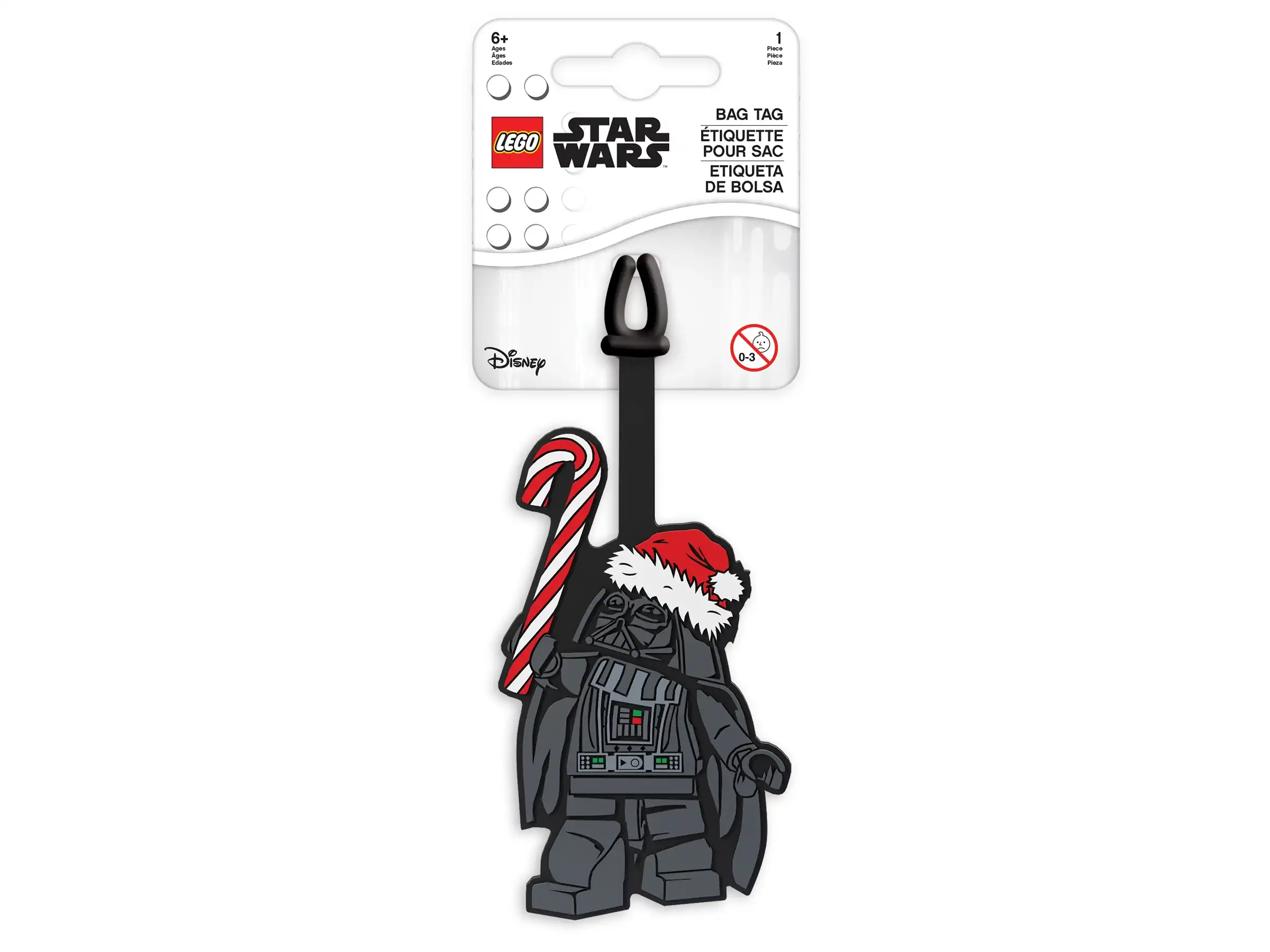 Ze świąteczną zawieszką Dartha Vadera (5006033) każdy dzień będzie pełen przygód. Zawieszka z elastycznego silikonu jest łatwa do zamocowania i przedstawia słynnego Lorda Sithów z kapeluszem Świętego Mikołaja oraz cukierkową laską. Przypnij ją do torby, plecaka lub pudełka na drugie śniadanie, a zaraz nabiorą świątecznego wyglądu! To świetny prezent na Boże Narodzenie dla każdego fana LEGO® Star Wars™. Z tyłu jest nawet miejsce, żeby wpisać dane kontaktowe.