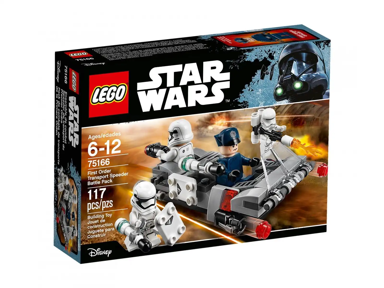 - Zestaw LEGO Star Wars - Śmigacz transportowy Najwyższego Porządku trafił do sprzedaży w 2017 roku. Numer katalogowy tego zestawu to 75166. Zawiera 117 klocków LEGO. W modelu znajdziesz też 4 minifigurki. Nazwa zestawu w języku angielskim LEGO Star Wars - First Order Transport Speeder Battle Pack. Grupa wiekowa tego produktu to 6+.