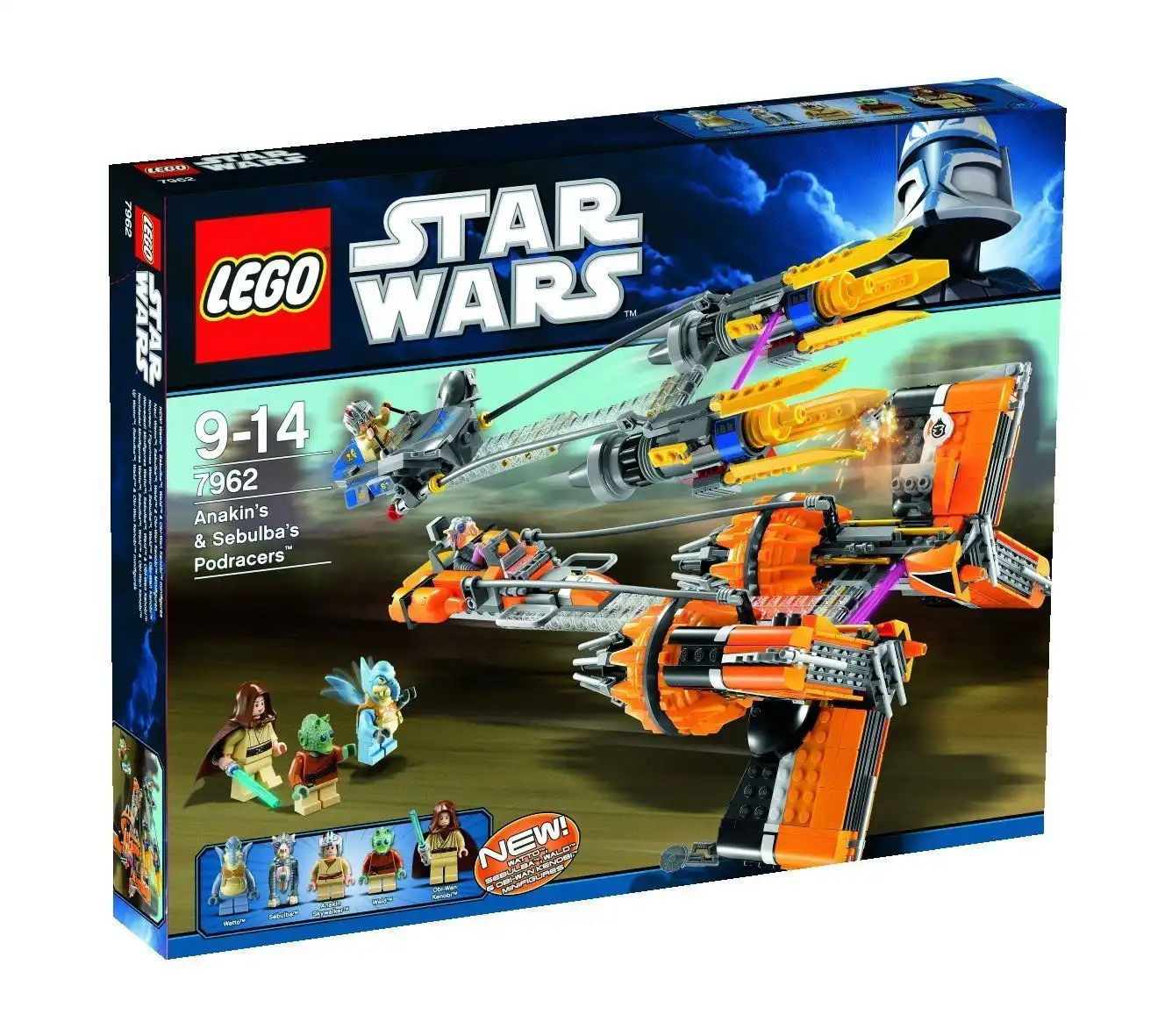Zestaw klocków LEGO 7962 Star Wars Anakin Skywalker and Sebulba’s Podracers™ został zaprezentowany w 2011 roku i zbudowany jest z 810 klocków LEGO®. W klockach znajdziesz także 5 minifigurek. Klocki przeznaczone są dla dzieci i młodzieży od 9 roku życia. Kod EAN klocków LEGO® 7962 to: 5702014736931.