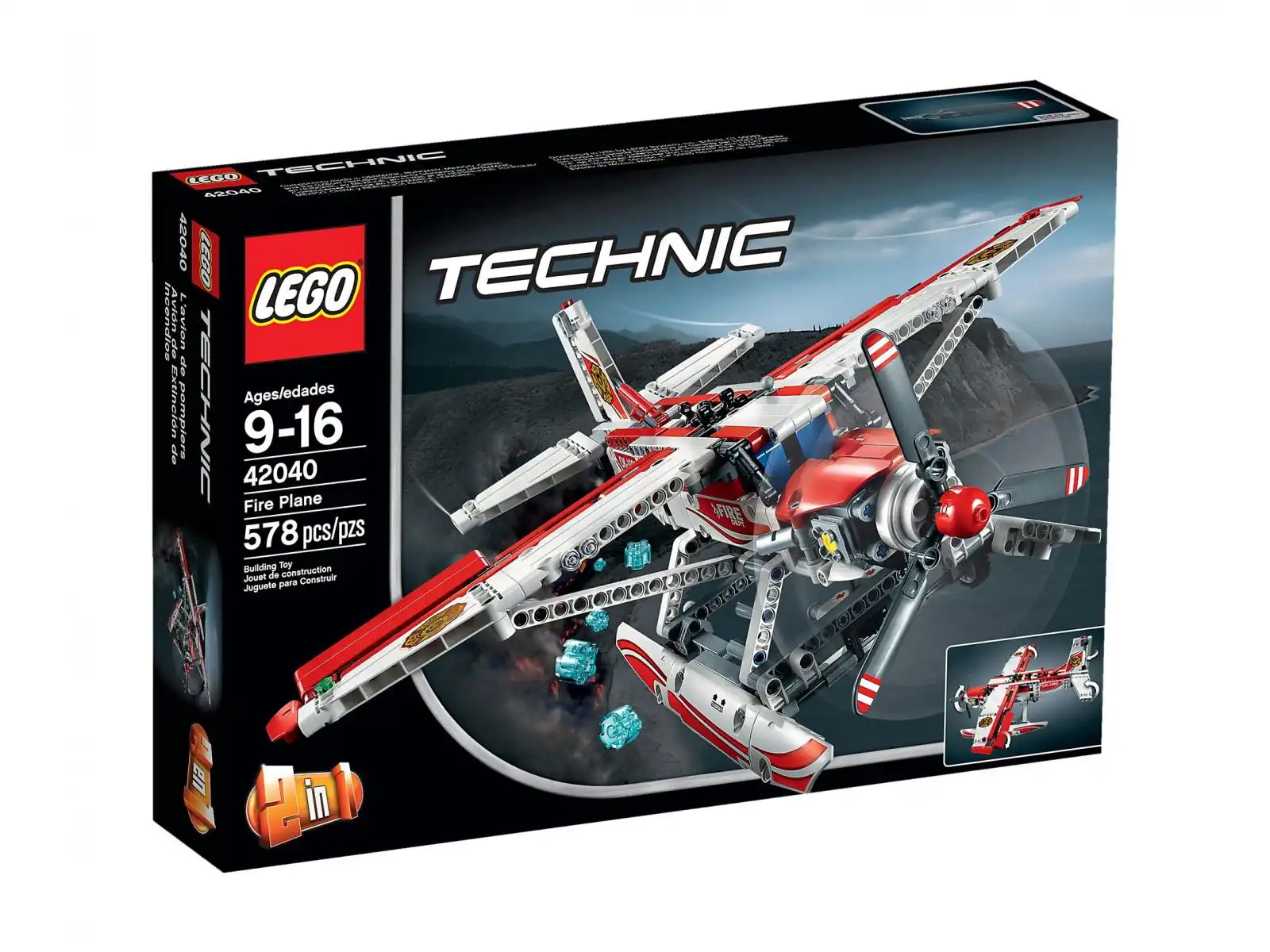 Wzbij się w przestworza, by walczyć z pożarami z pokładu niesamowitego samolotu strażackiego typu „2 w 1” z serii LEGO® Technic! Ten imponujący model wypełniony jest po brzegi autentycznymi detalami i funkcjami takimi jak szczegółowo oddany dwucylindrowy silnik, sterowane joystickiem lotki i stery wysokości czy duże płozy. Przygotuj się do startu, obserwując obracające się trójłopatowe śmigło oraz pracujące tłoki silnika, a następnie rozpędź się po morskiej tafli, by wzbić się wysoko w powietrze. Gdy dotrzesz nad miejsce pożaru, uruchom mechanizm zrzutu zimnej wody i ugaś płomienie. Zupełnie jak w rzeczywistości! Charakteryzuje się niezwykle efektowną kolorystyką łączącą czerwień i biel. Do modelu dołączono także zestaw naklejek. Po ugaszeniu pożaru z samolotu strażackiego może stworzyć superszybki samolot odrzutowy.