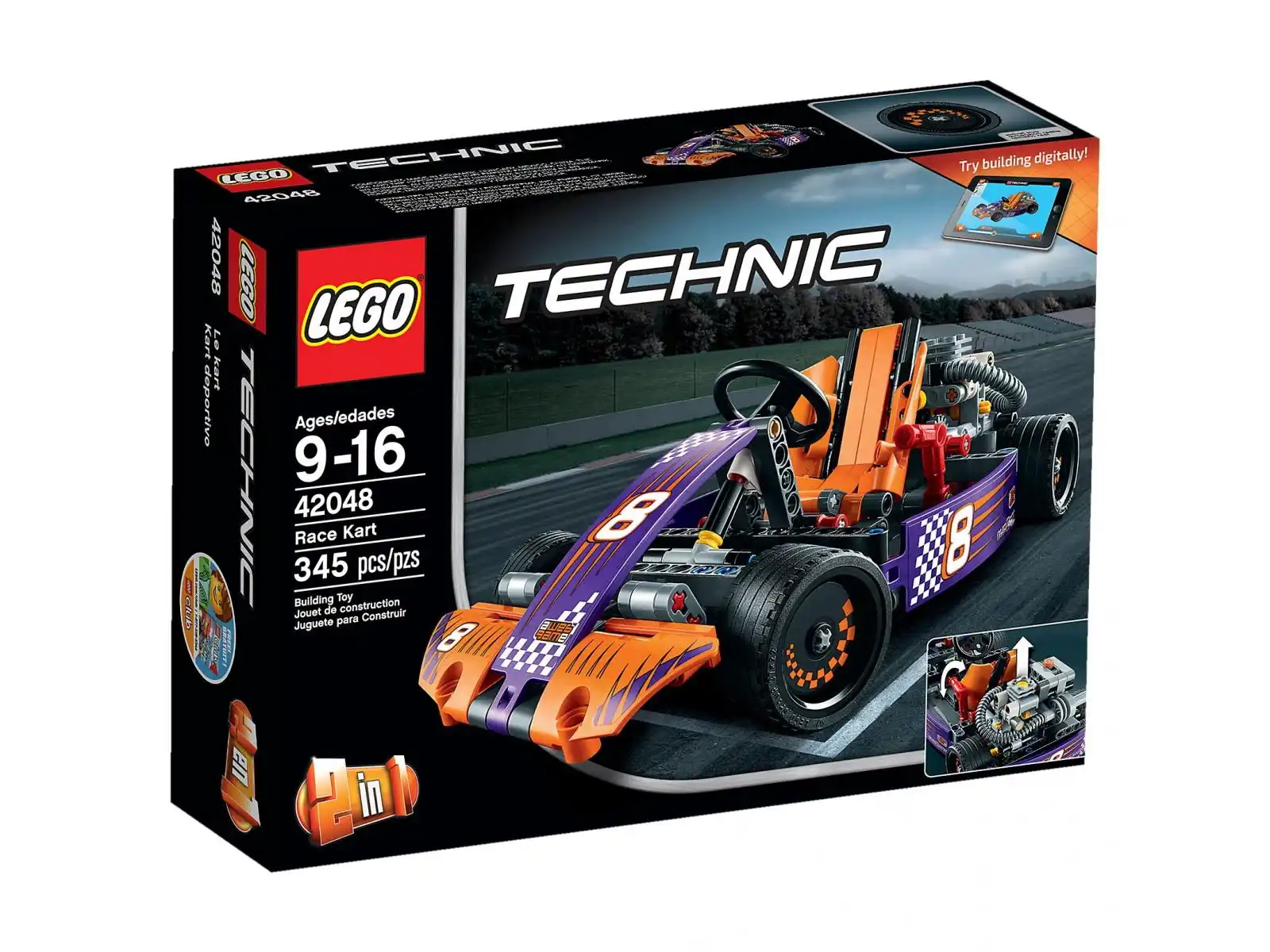 Ta realistyczna replika gokarta jest naprawdę szybka! Ma fioletowo-pomarańczowe nadwozie ozdobione wyścigowymi naklejkami, pracujący układ kierowniczy i skrzynię biegów ukrytą pod odchylanym wyścigowym siedzeniem, a do tego silnik z ruchomym tłokiem. Ten solidny model typu „2 w 1” z serii LEGO® Technic dostarcza podwójnej przyjemności — możesz go przerobić na torową wyścigówkę. Gokart ma nadwozie o smukłych liniach, zupełnie jak pierwowzór. Obrazu sportowej maszyny dopełniają szerokie obręcze z oponami typu slick, pracujący układ kierowniczy i skrzynia biegów, silnik z ruchomym tłokiem, zbiornik paliwa, pedały i wielkie rury wydechowe.