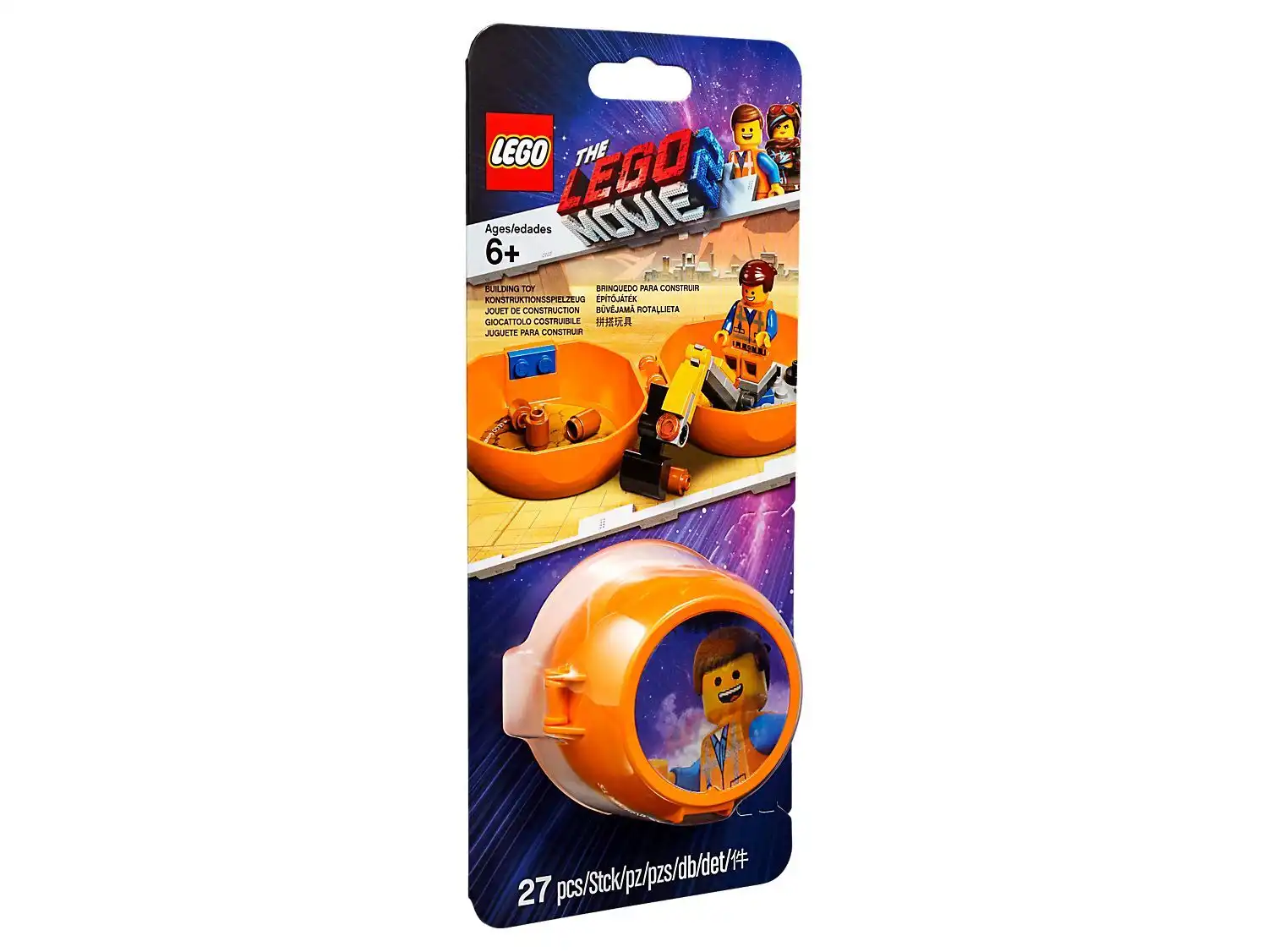 Nieważne, dokąd się wybierzesz — teraz dzięki kapsule konstrukcyjnej Emmeta 853874 z serii THE LEGO® MOVIE 2™ nie musisz w ogóle przerywać zabawy. Ta mała, przenośna kapsuła ma z zewnątrz niesamowity rysunek soczewkowy — zależnie od kąta patrzenia zobaczysz na nim głowę Emmeta albo logo serii THE LEGO® MOVIE 2™. W zestawie znajdziesz wszystko, co potrzebne, aby pobudzić wyobraźnię: minifigurkę Emmeta, zamocowaną w środku kapsuły płytkę konstrukcyjną LEGO, która przypomina plac budowy, a także koparkę do zbudowania i kawałki „gruzu”.