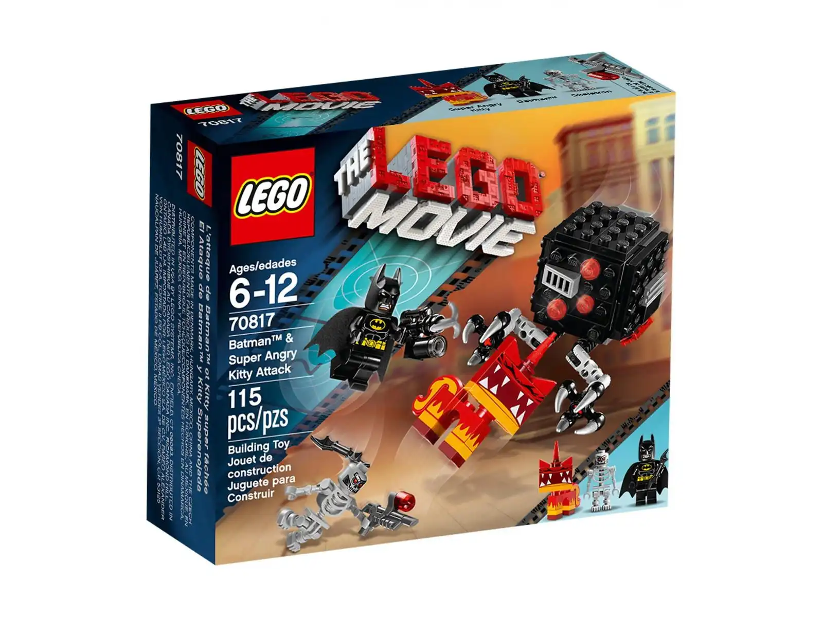 Połącz Super Angry Kitty i Batmana™ z Micro Managerem, aby odtworzyć emocjonującą finałową scenę bitwy z filmu LEGO® PRZYGODA™. Pomóż Super Angry Kitty zaatakować Micro Managera i naucz go być bardziej przyjaznym. Szybuj w powietrzu z Batmanem w Pelerynie Krzyżowca™ i atakuj swoim Batarangiem i hakiem. Unikaj chwytnych pazurów i wystrzeliwanych rakiet przez Micro Managera i uważaj na Szkieletona wycelowanego w laserowy miotacz z ziemi. Wskocz na tył Micro Managera i włącz funkcję wybuchu, aby wreszcie pokonać to grasujące zagrożenie! W zestawie minifigurka Batmana™ z bronią oraz dwie figurki: Super Angry Kitty i Szkielet z bronią.