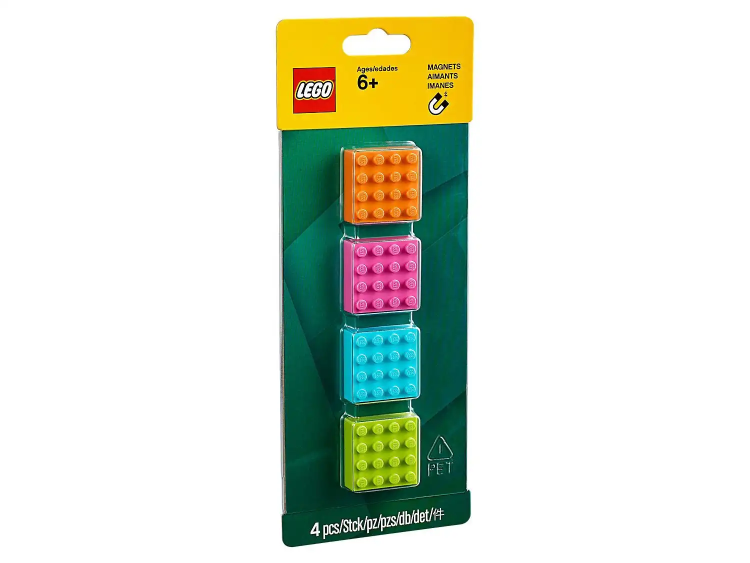 Udekoruj swoje otoczenie kolorami LEGO®! Pomoże ci w tym zestaw 853900 LEGO Iconic Magnesy z klockiem LEGO® 4x4, w którym znajdziesz 4 magnesy w nowych, dostępnych od stycznia 2019 r. kolorach: jasnopomarańczowym, jasnofioletowym, jasnozielonym oraz turkusowym. Przyczep magnesy do lodówki, szafki lub innej magnesującej się powierzchni, aby napełnić dom magią LEGO!